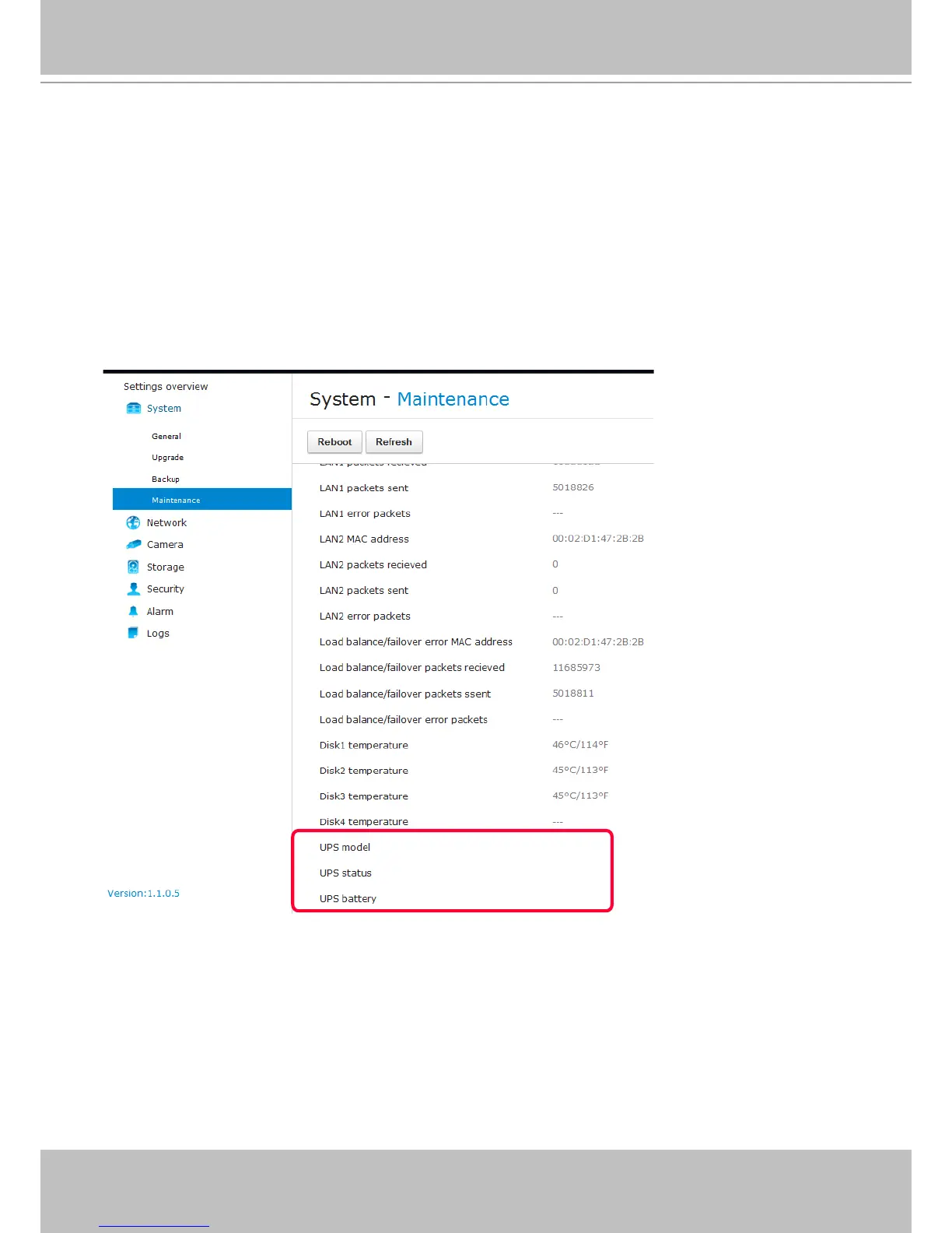 Once an UPS is connected via the USB interface, the NVR system supports the cooperating