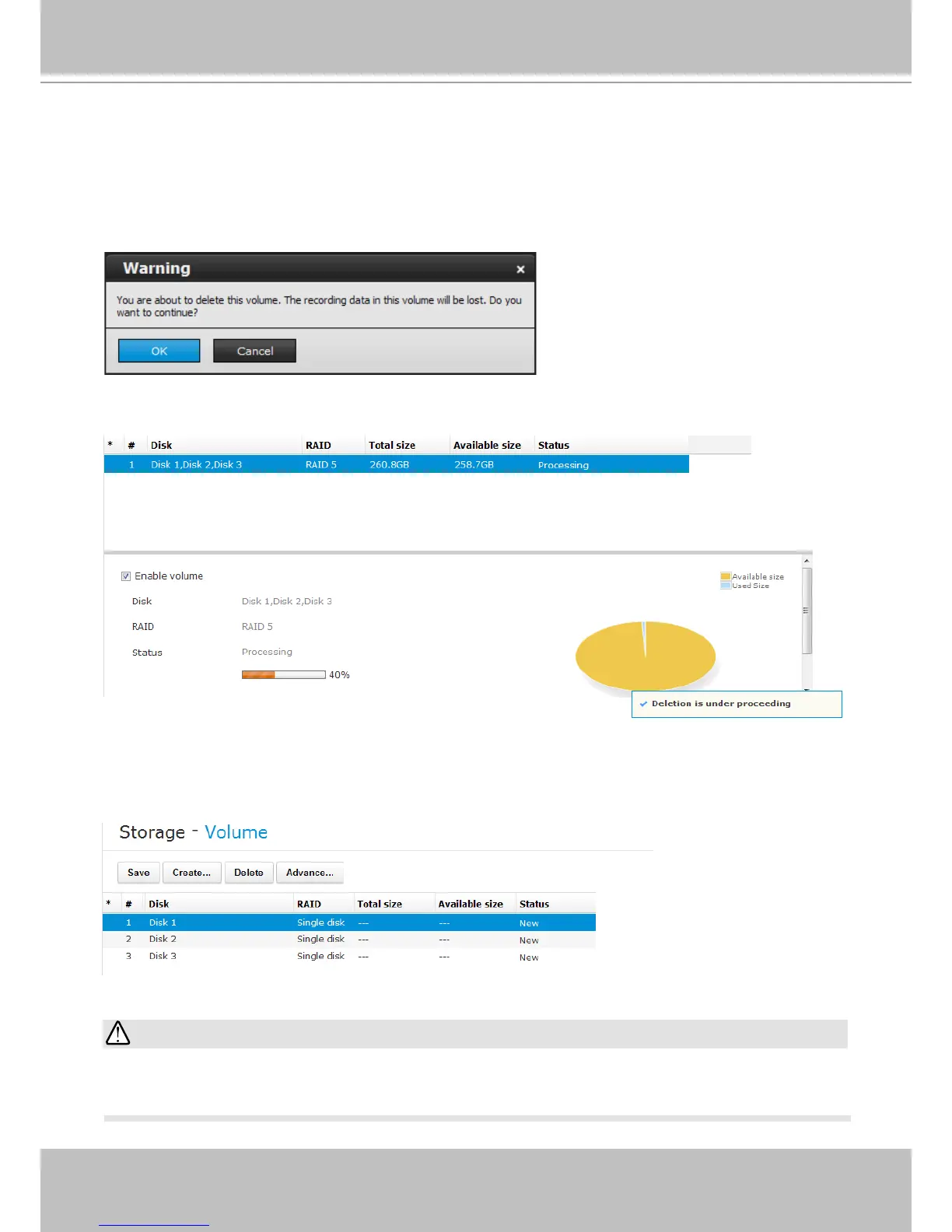 If you want to delete a RAID5 volume with a spare drive, remove the spare drive before you
