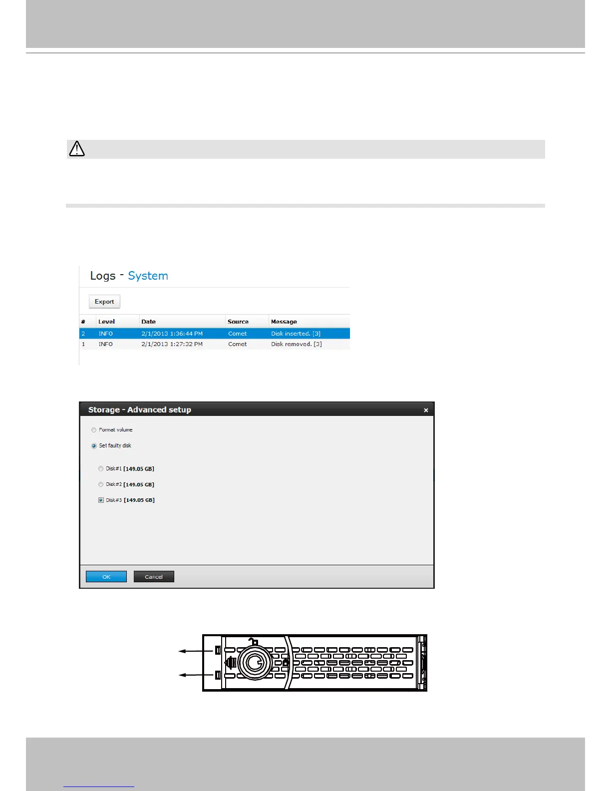 1. In System > Logs window, make sure which disk drive has failed. The sample screen shows