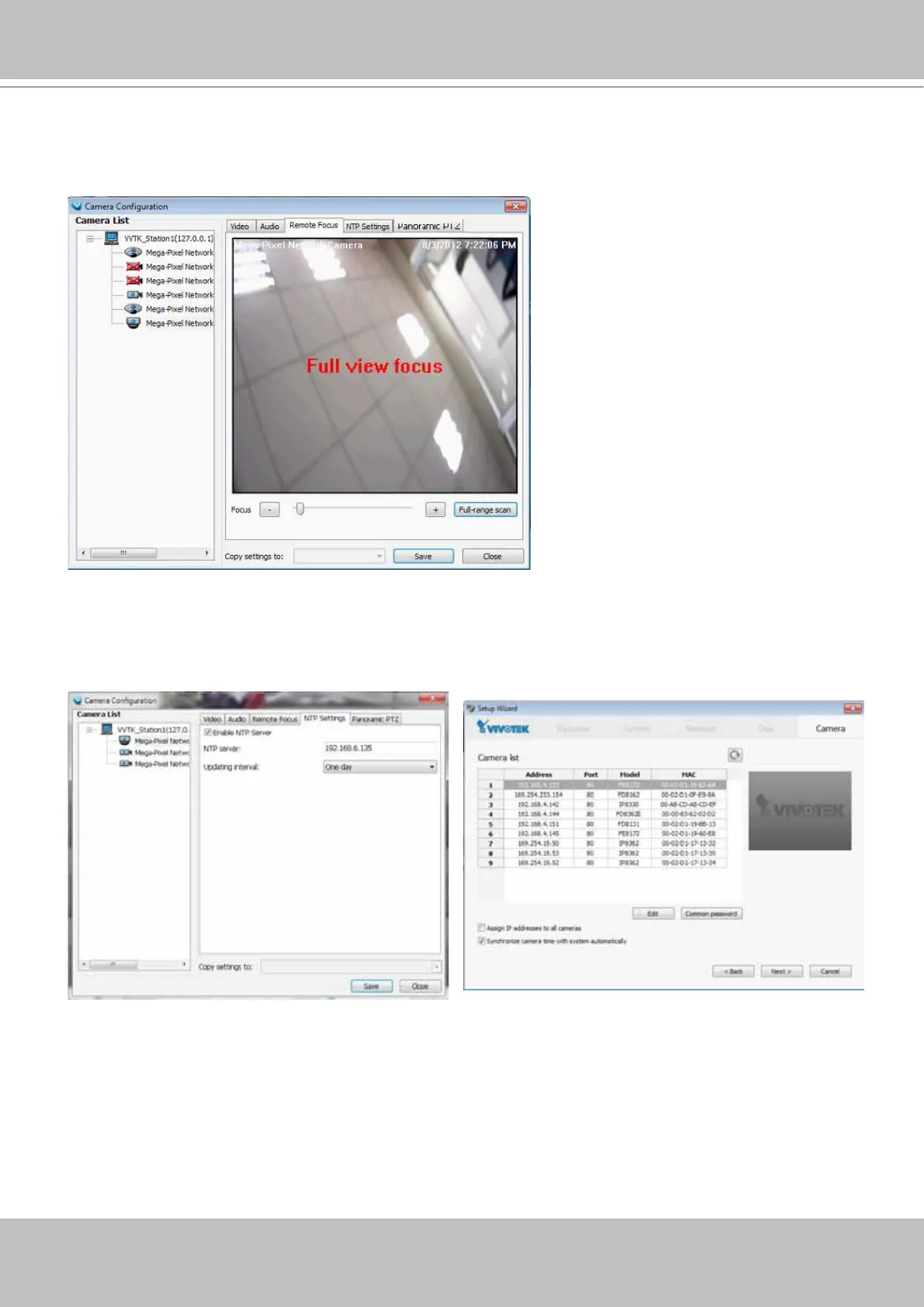 If cameras’ real time clocks are set to be synchronized with a time server, enter the NTP server’s ad-