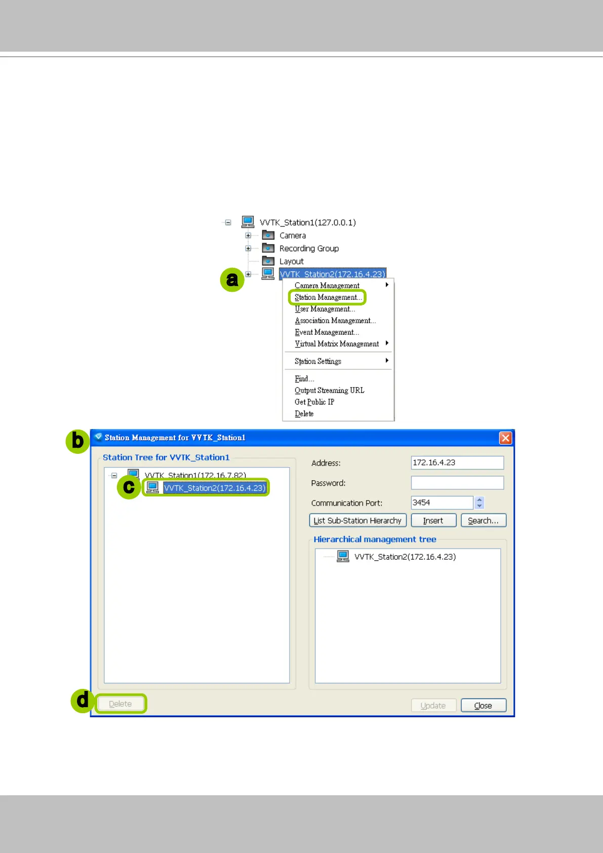 b. The Station Management window will pop up. The hierarchical management tree managed by the