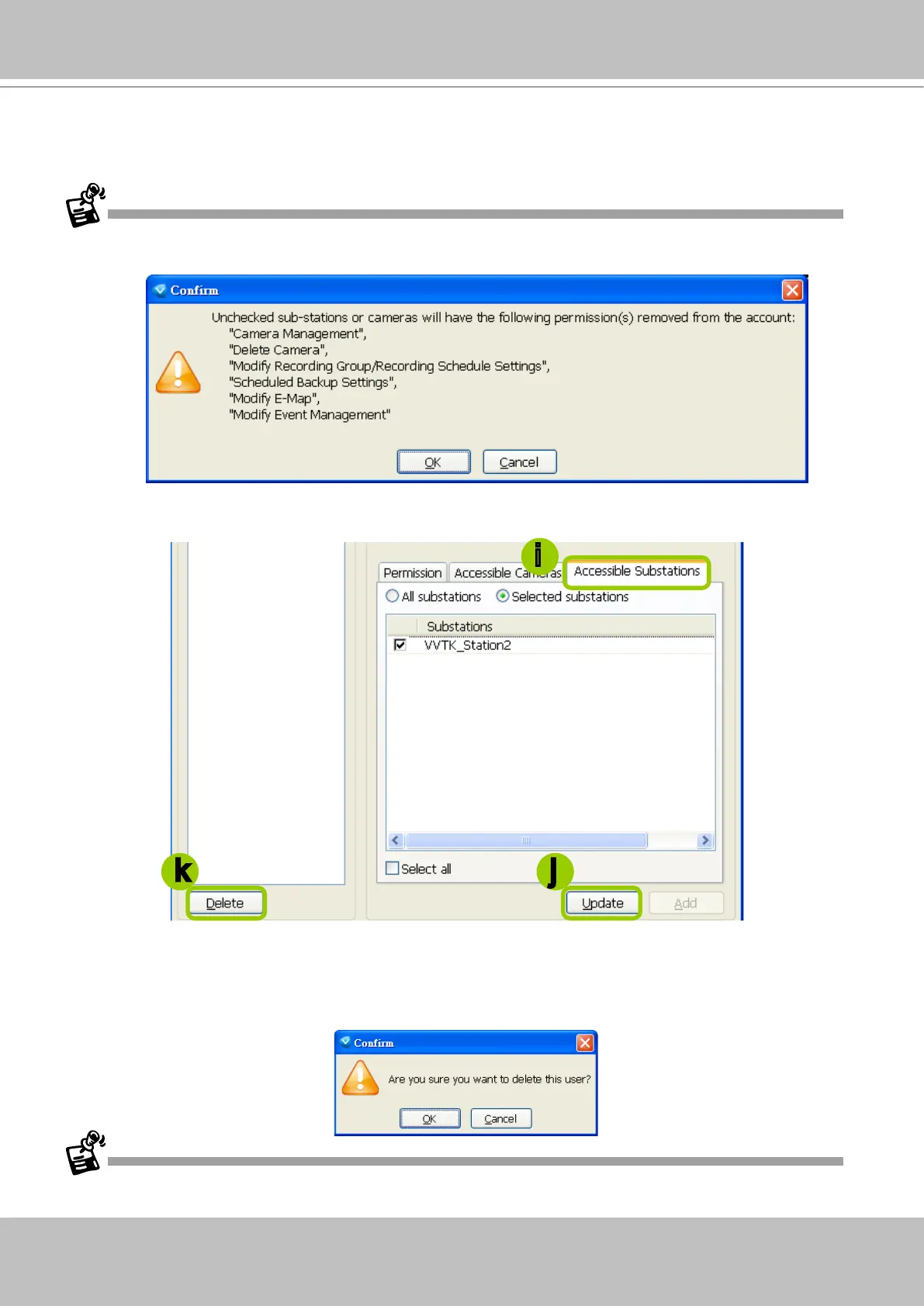 If the Administrator modies or deletes the User Account, that modied user might be kicked off from the station.