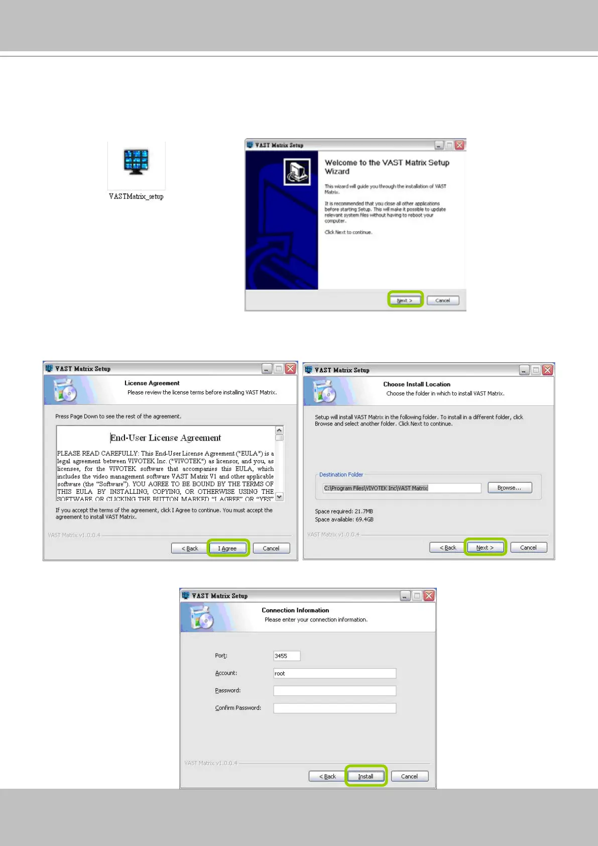 Please follow the steps below to install VAST Matrix Program: