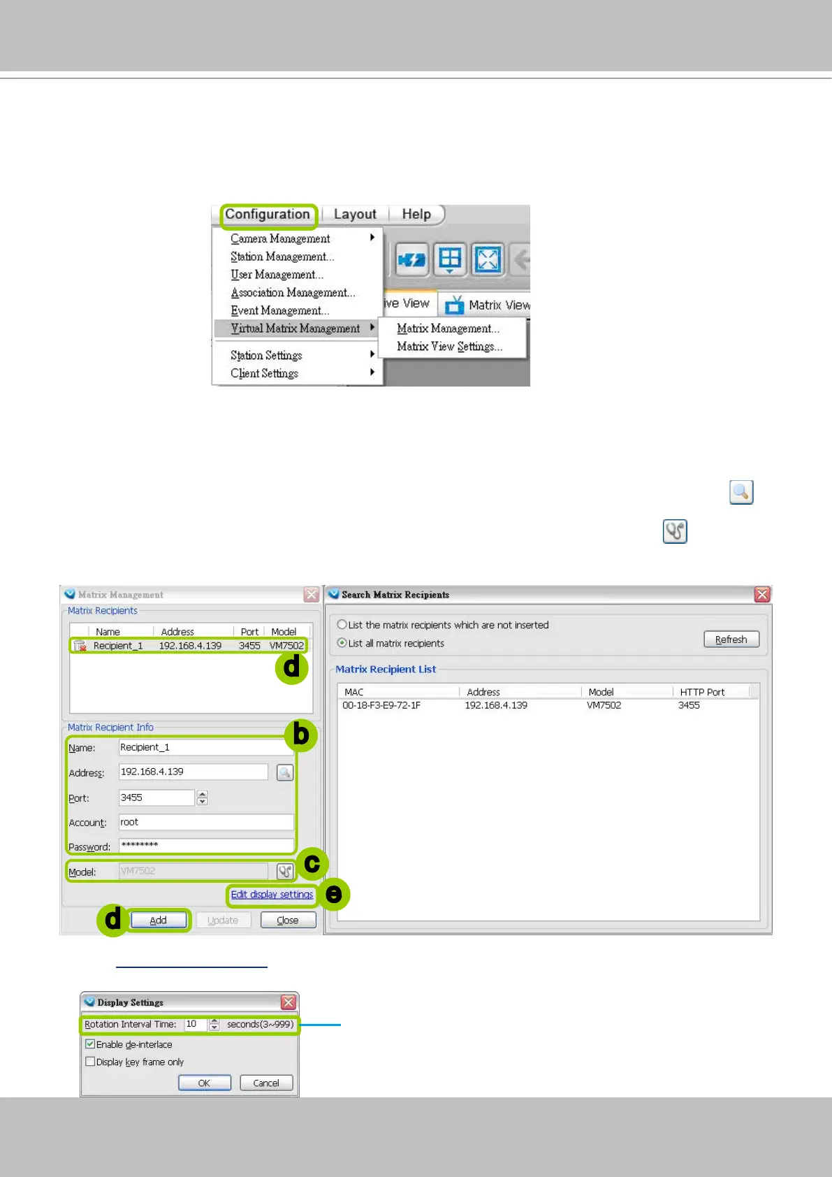 VAST Matrix Recipient(s). Use LiveClient to log in VAST Server, then click Configuration > Virtual