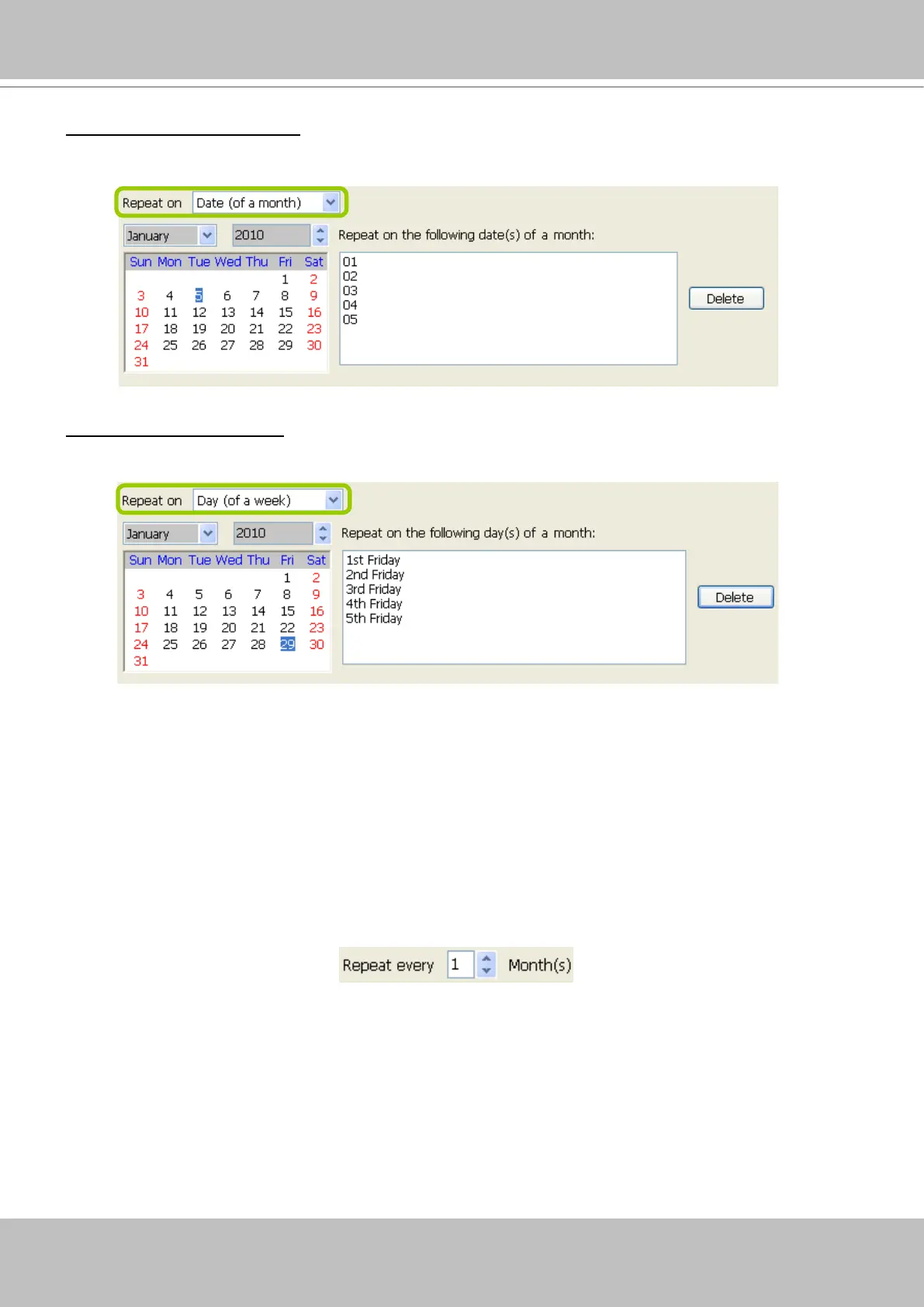 Repeat by date(s) of a month: