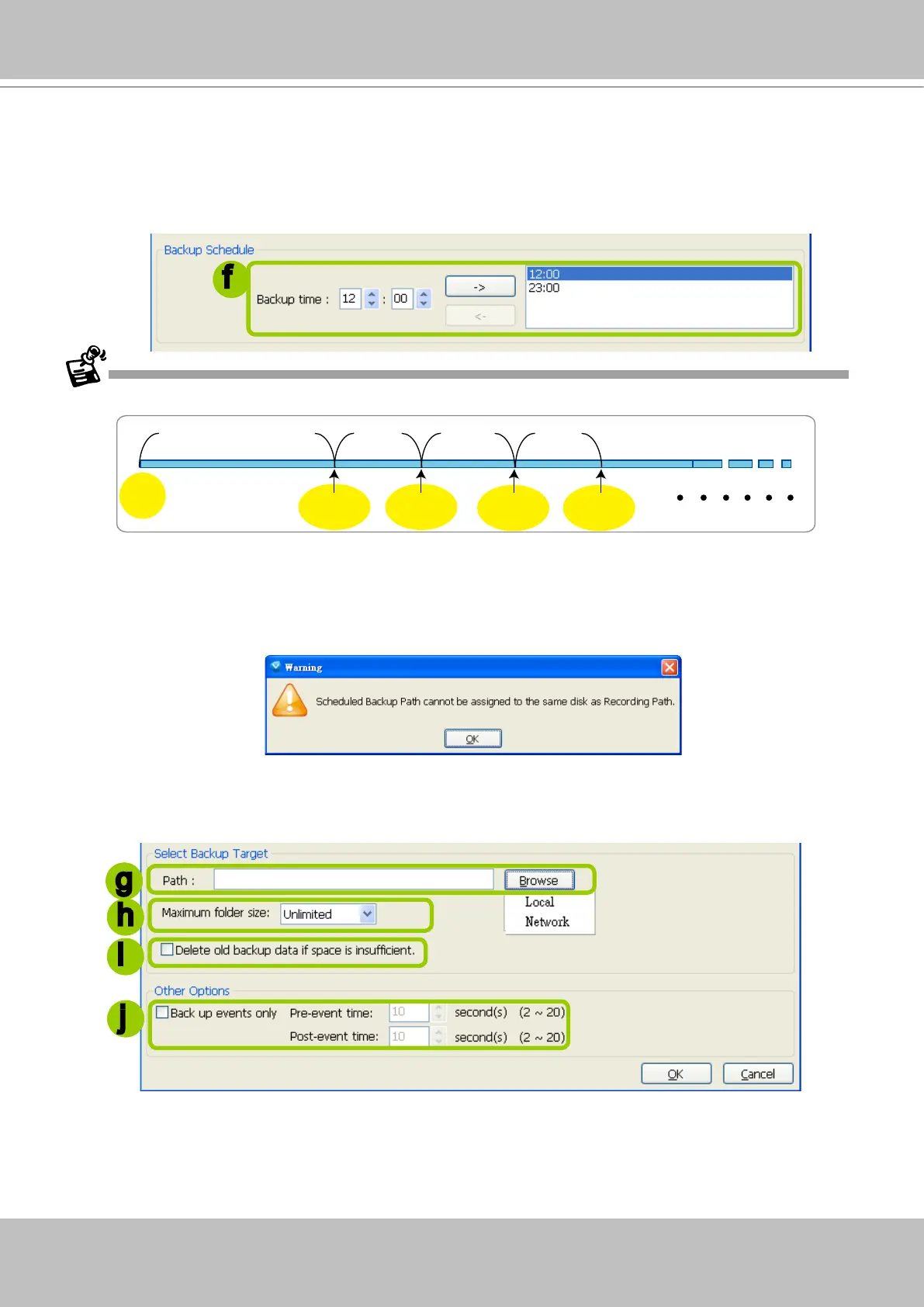 j. If you only want to backup the recorded data of events, select Backup only events and ll in the pre-