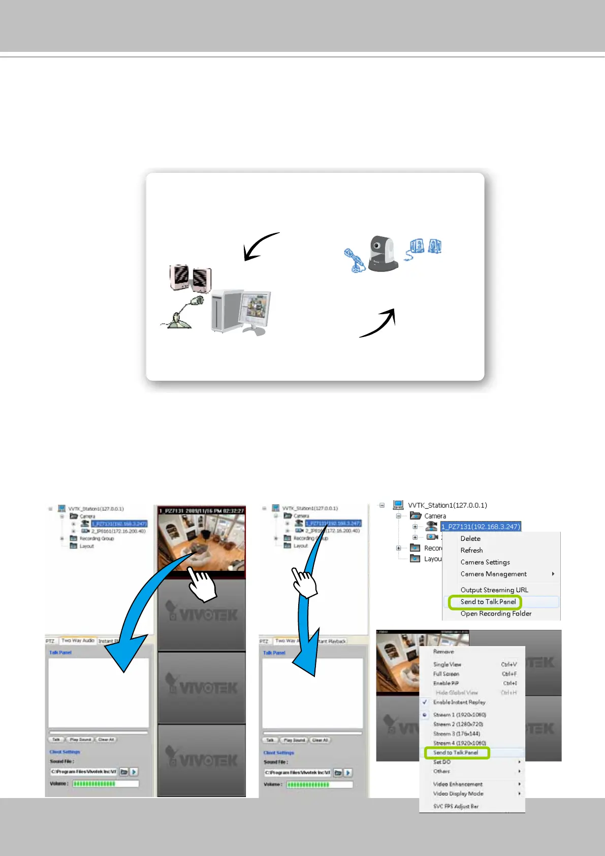 as shown below. You can also right-click the target camera or the video cell, then click Send to Talk