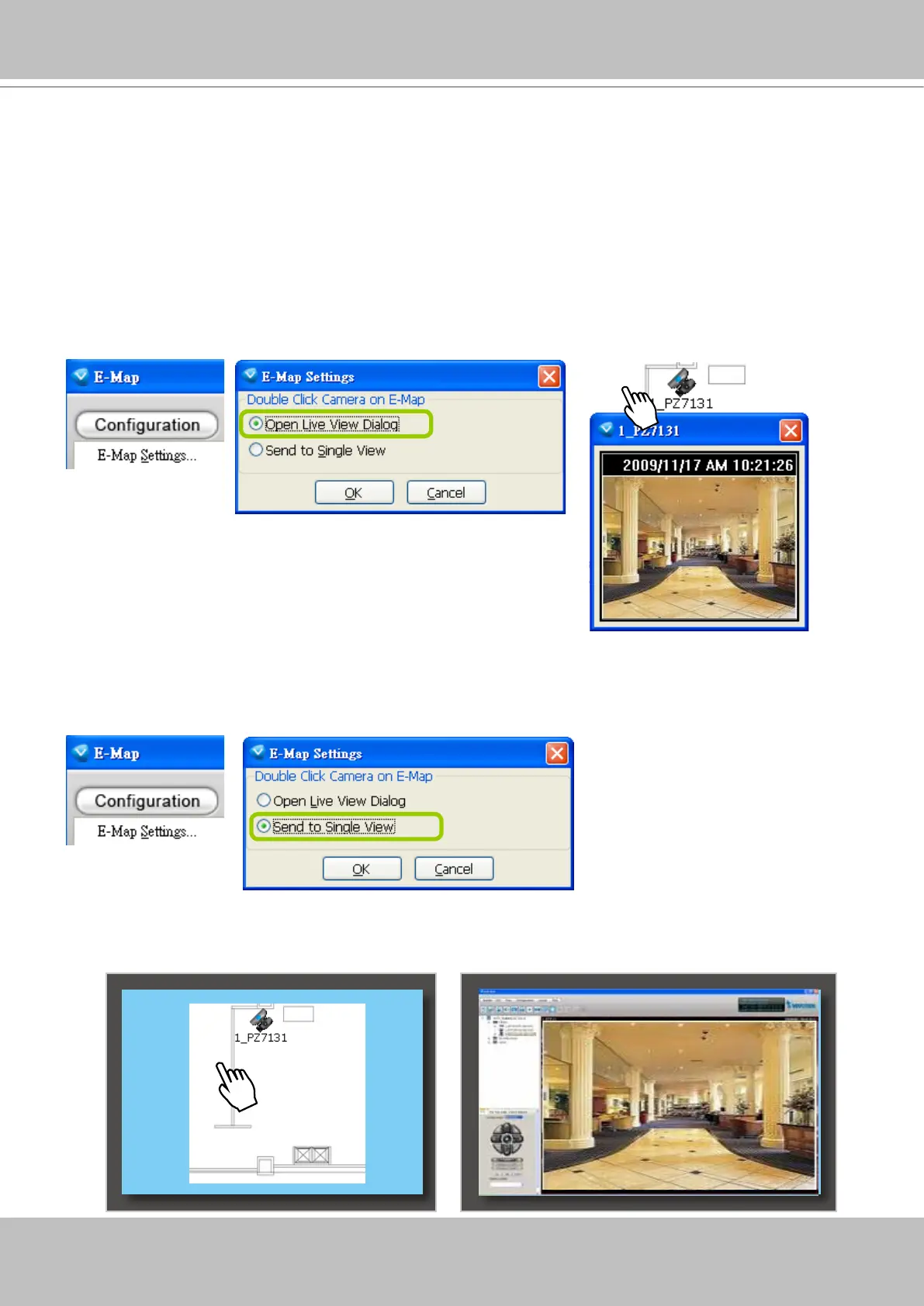 triggers, a live view dialog will pop up beside it. It is the default setting in E-map Settings window.
