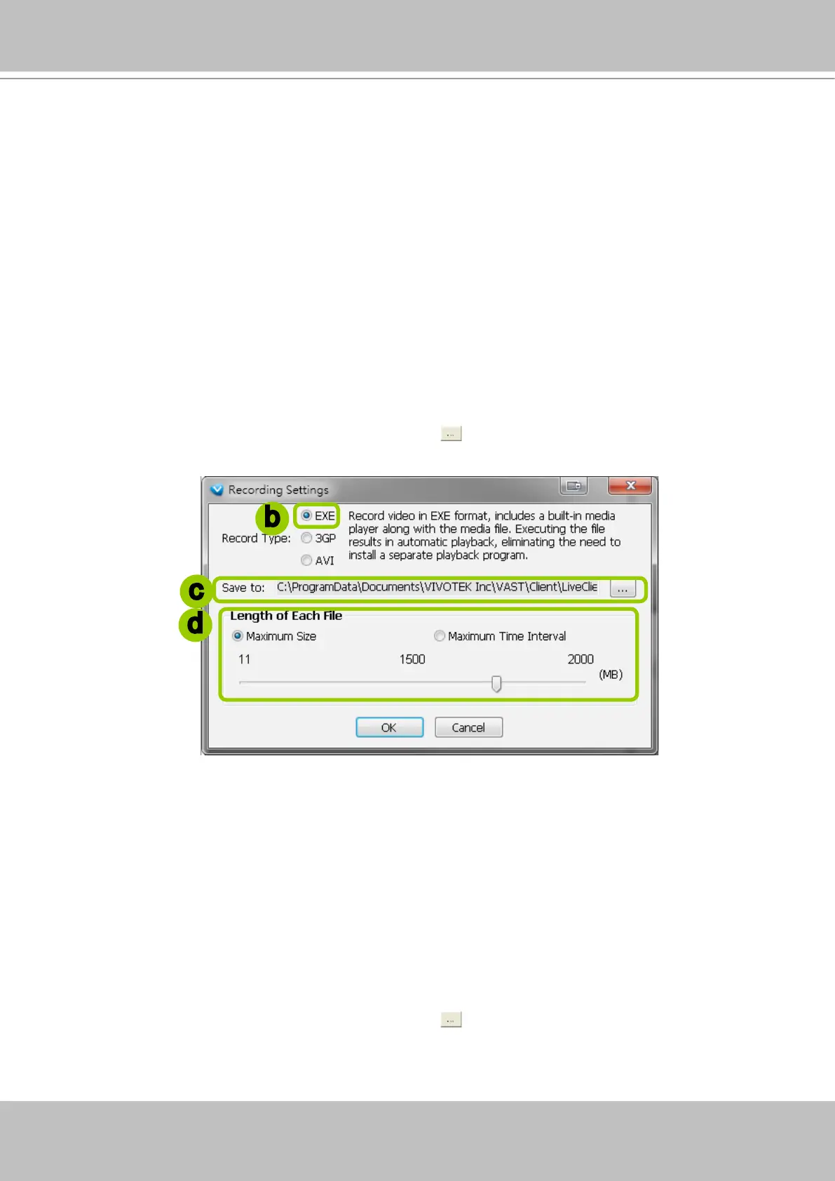 c. The default storage path is C:\Users\Public\Documents\VIVOTEK Inc\VAST\Client\LiveClient\Record.