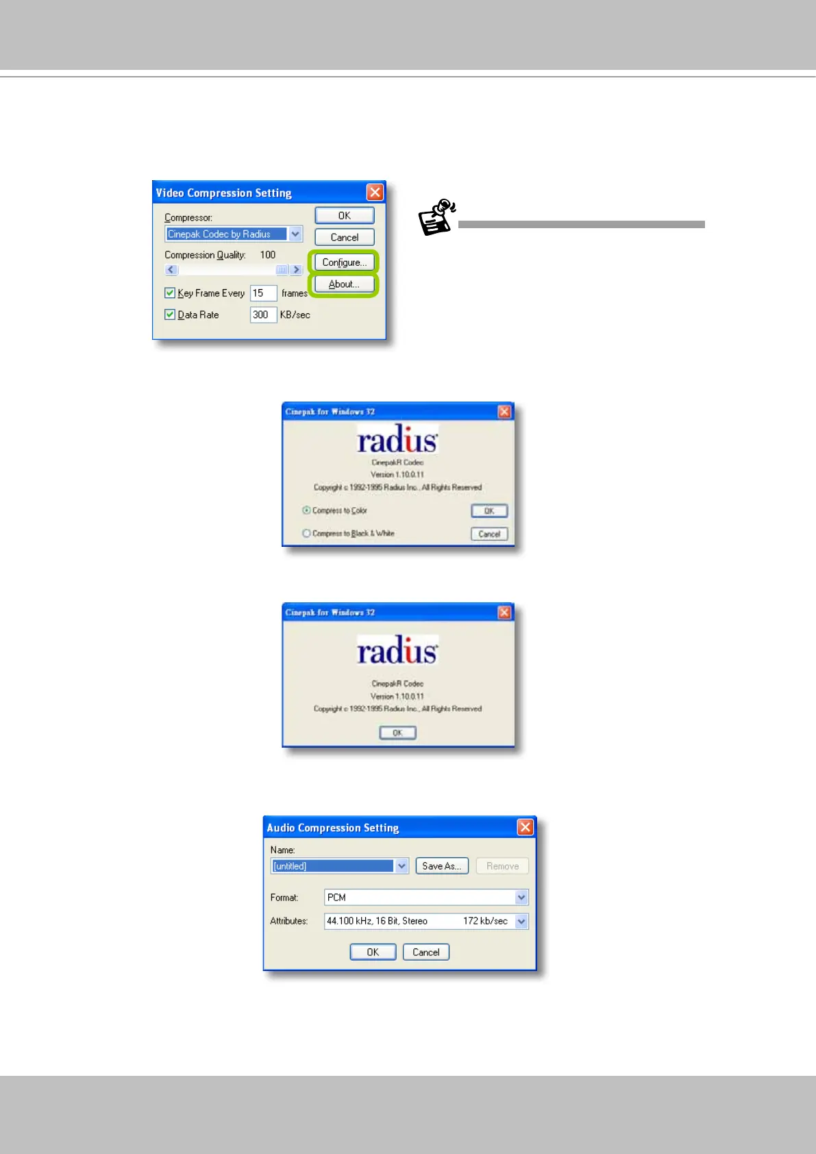 g. To modify the audio compression settings, click Audio Compression Setting to open the AVI