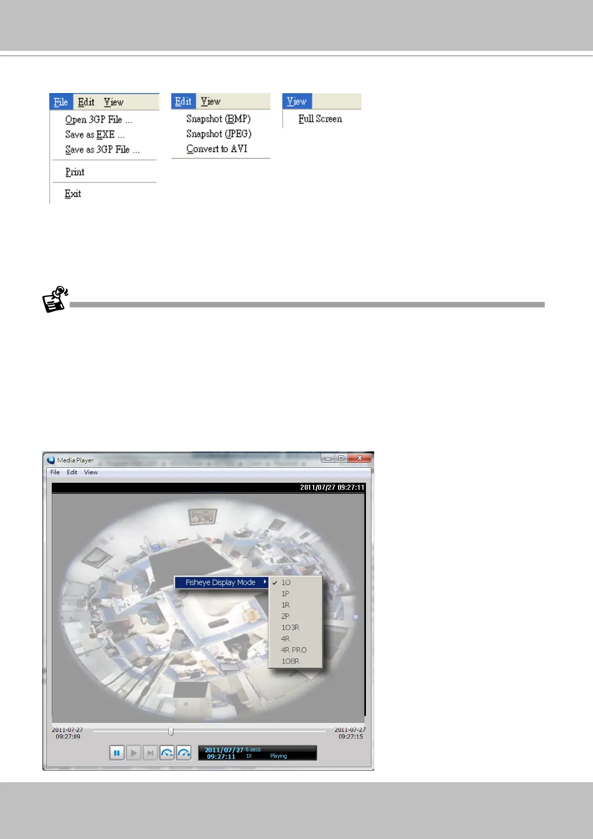For recorded videos from the fisheye cameras, only the built-in Media Player can playback the
