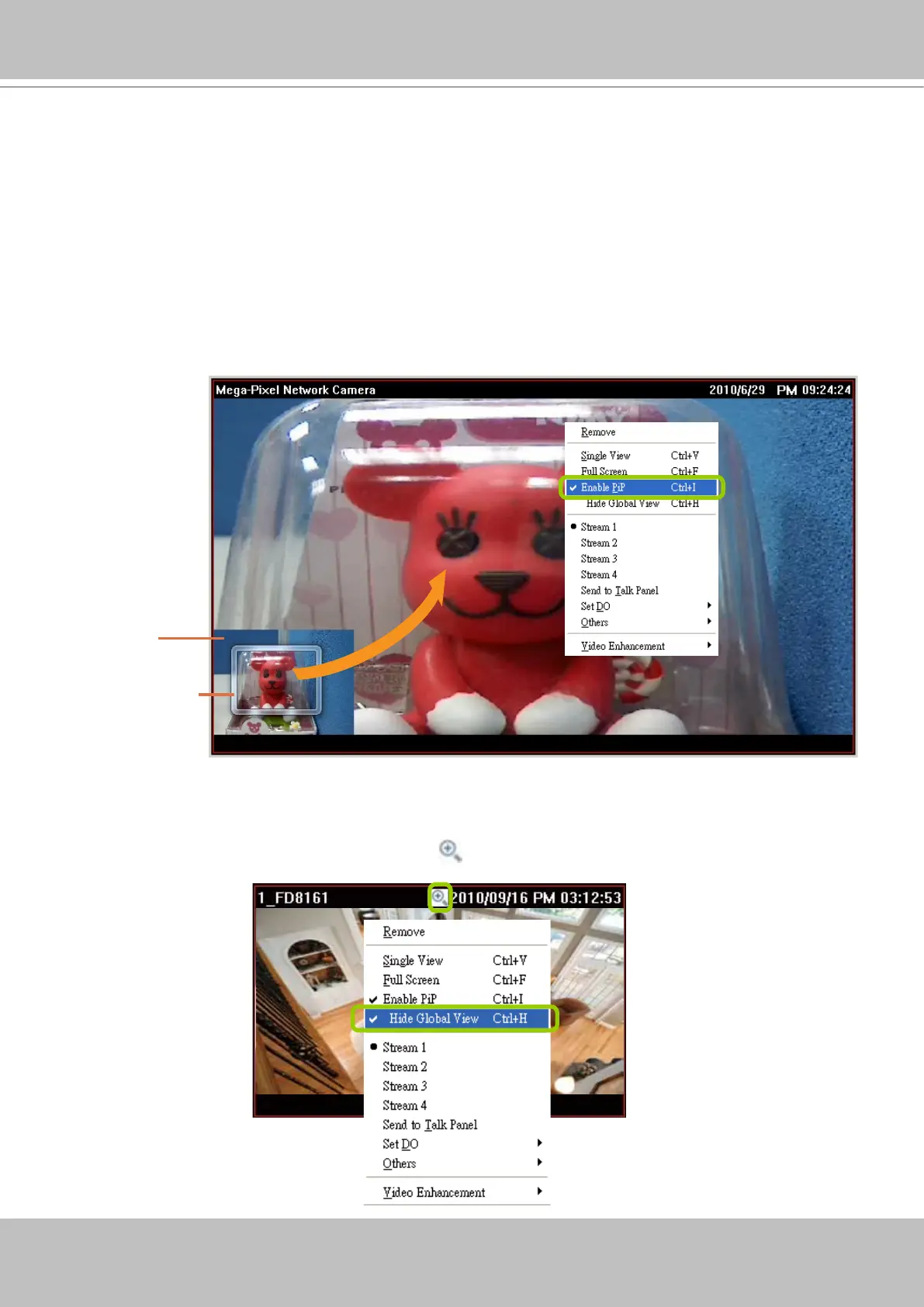 uncheck it. After you enable the PiP function, a movable global view window and a ROI frame will be
