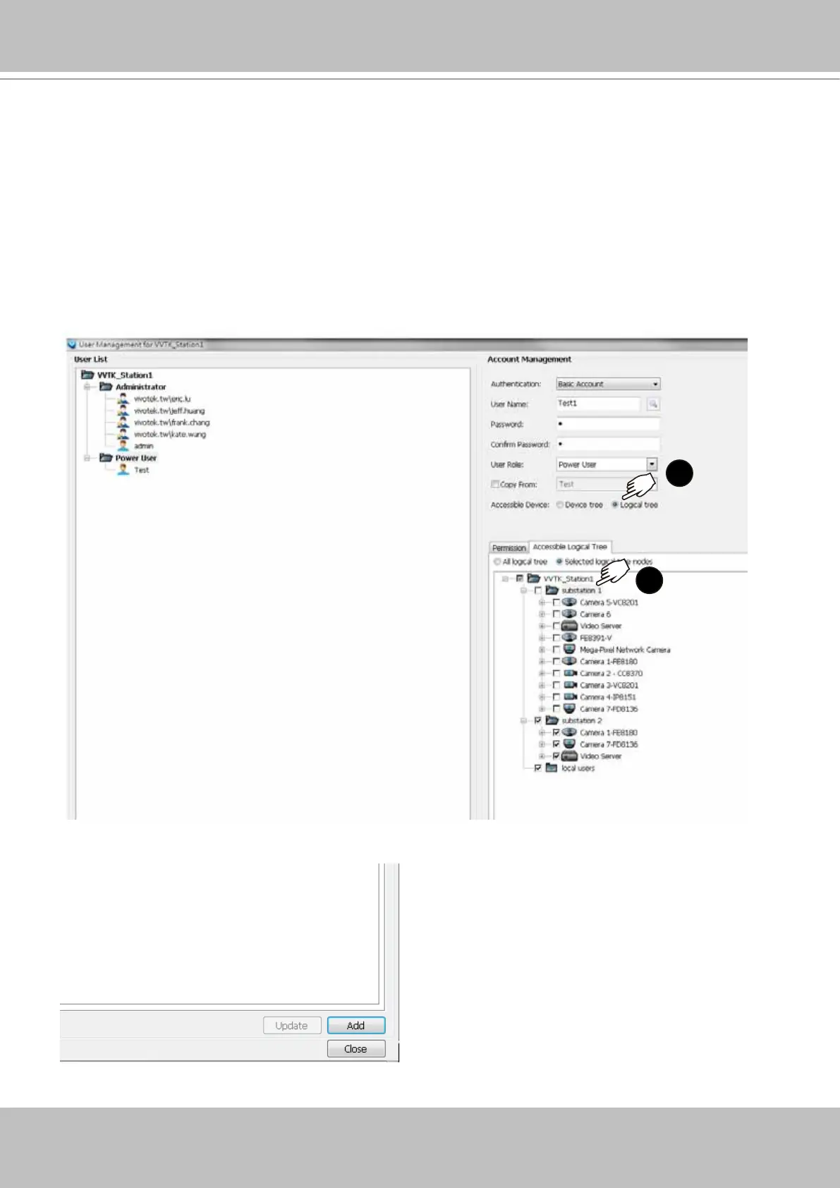 1. When you assign Accessible Devices for a user, select the Logical tree button on the