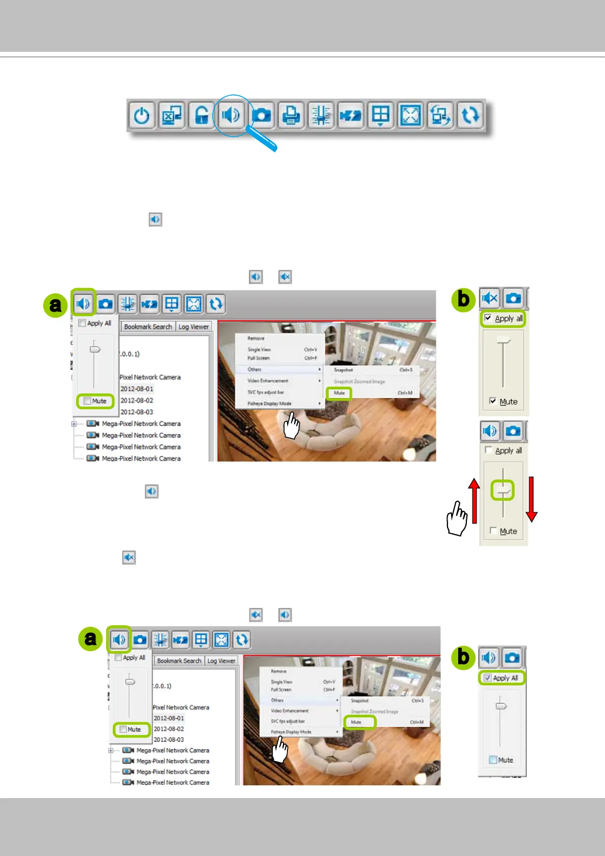 microphone. Please follow the steps below to adjust the volume or turn on/off the audio of the