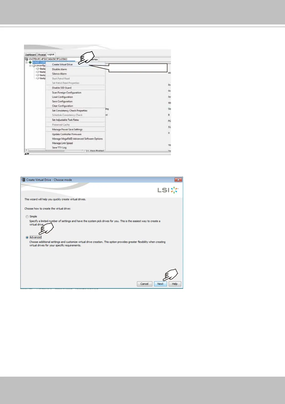 7. The Create Virtual Drive wizard will start. Click to select the Advanced mode. Then click the