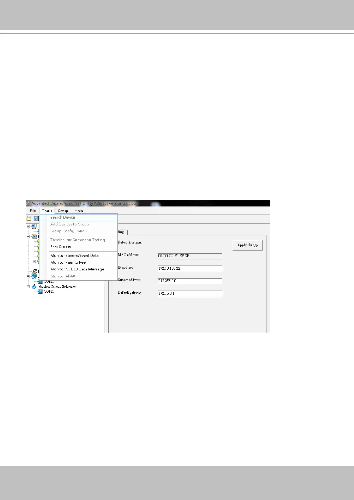 The Advantech I/O modules come with configuration utilities, such as the Adam/Apax.NET.