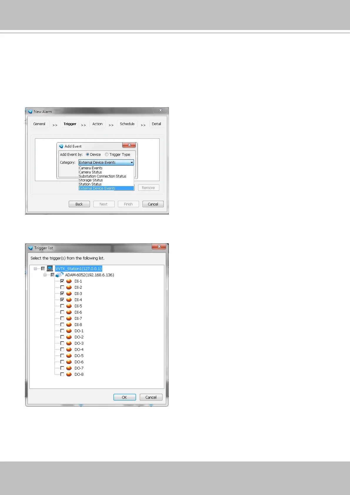 Configure a new alarm. On the Trigger window, select the Trigger Category as External