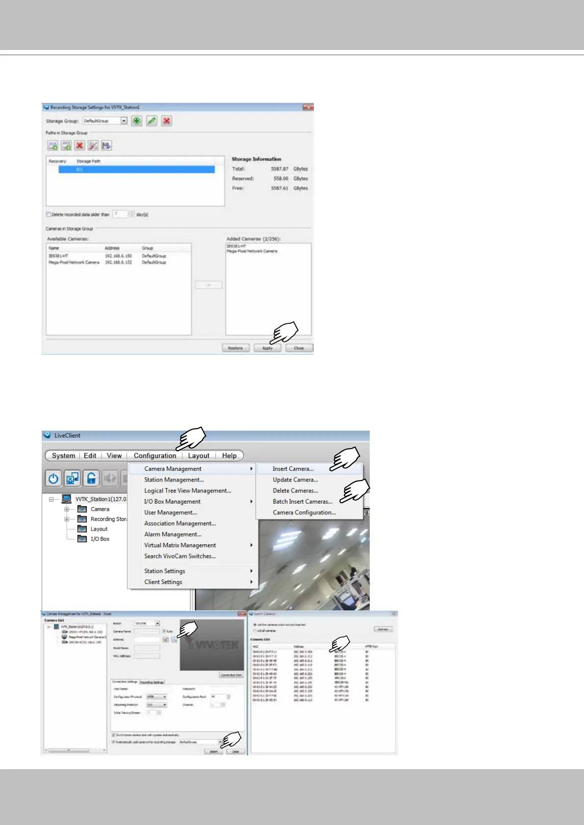 26. Open the Camera Management > Insert Camera or Batch Insert Cameras window.