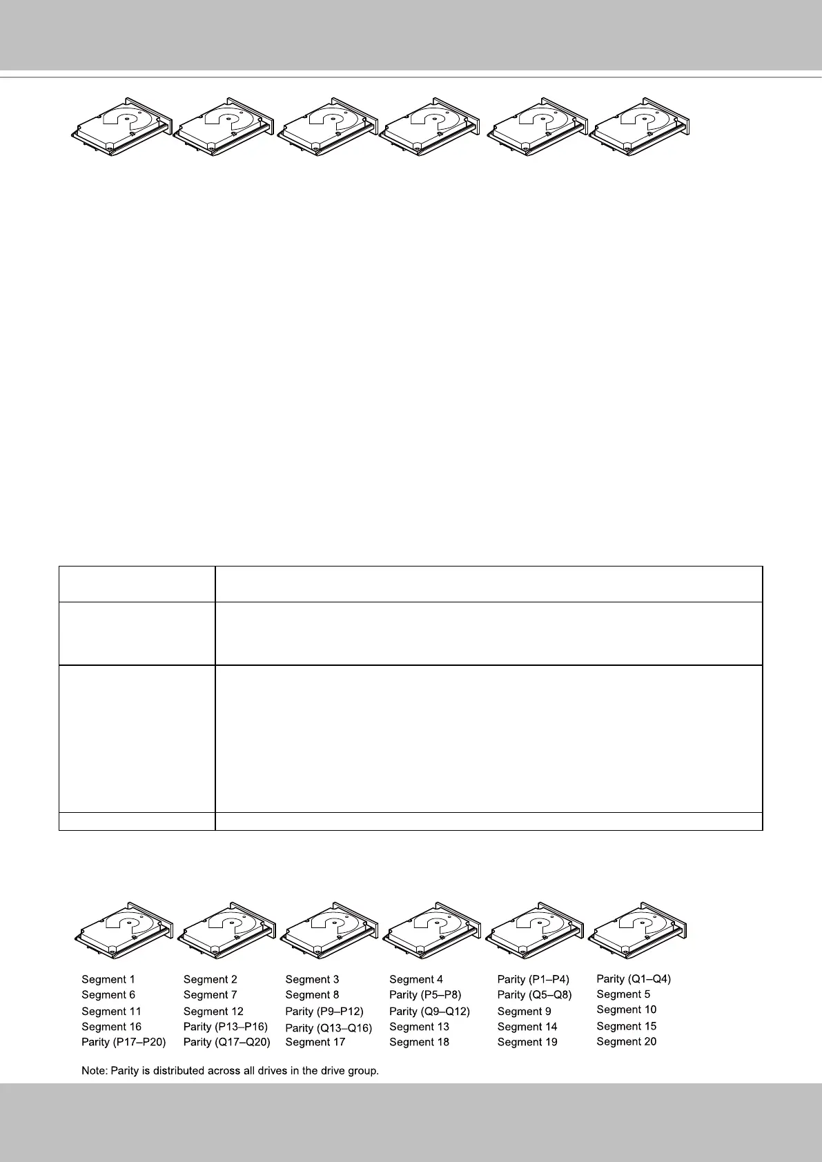 The following gure shows a RAID6 drive group data layout. The second set of parity drives is