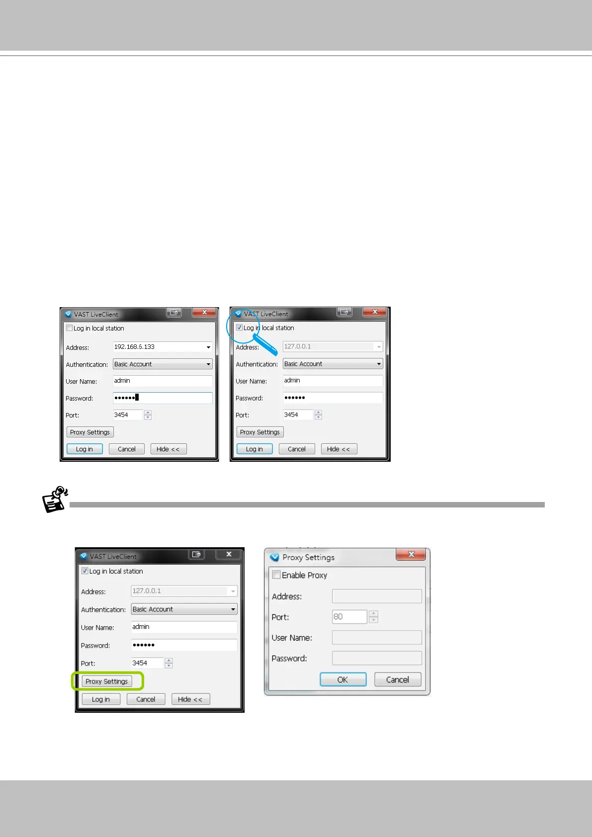 If you want to login to a local host that is running VAST Server, check the Login local station check-
