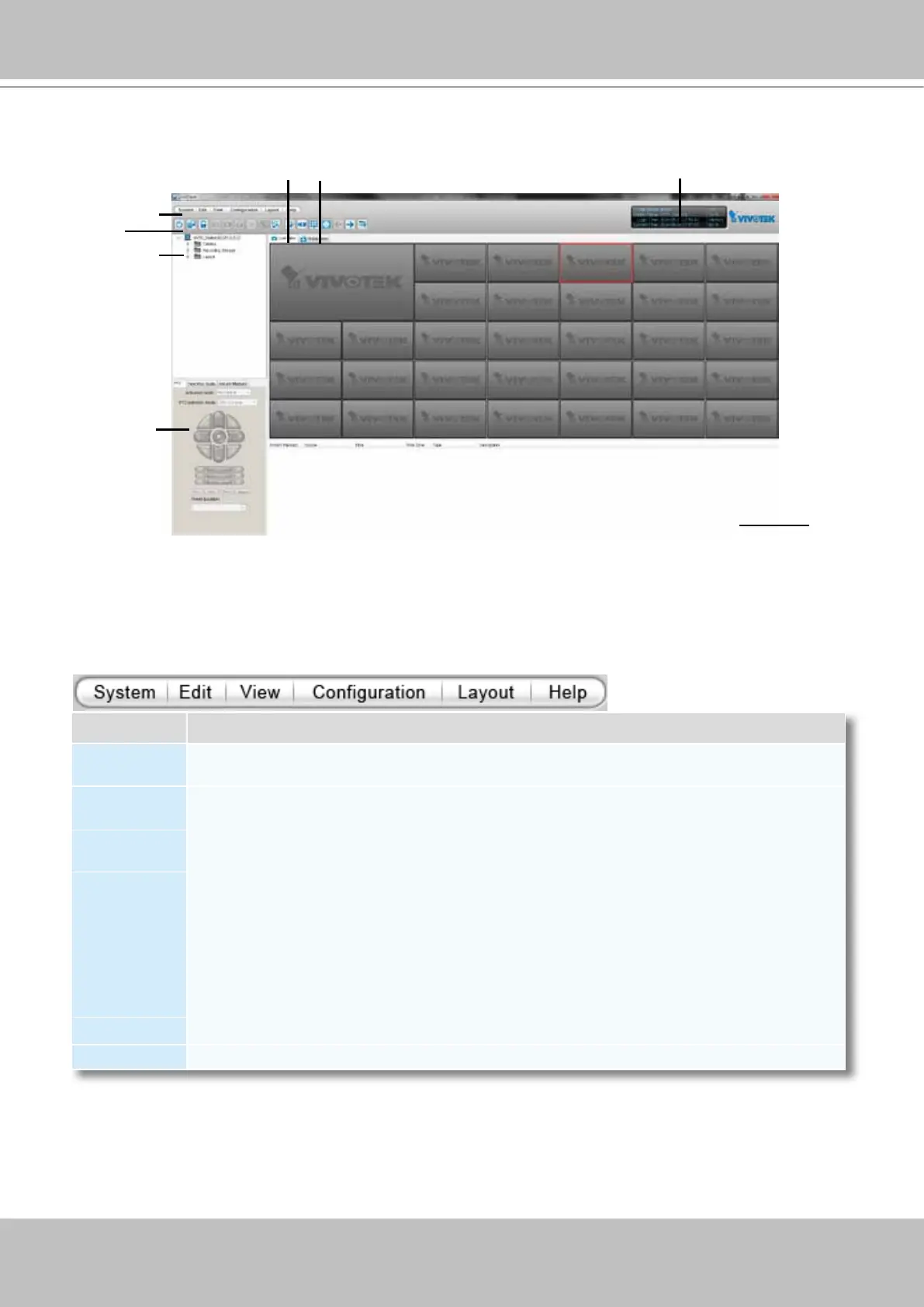 E. Live view window F. Matrix view window G. Status panel H. Alarm window