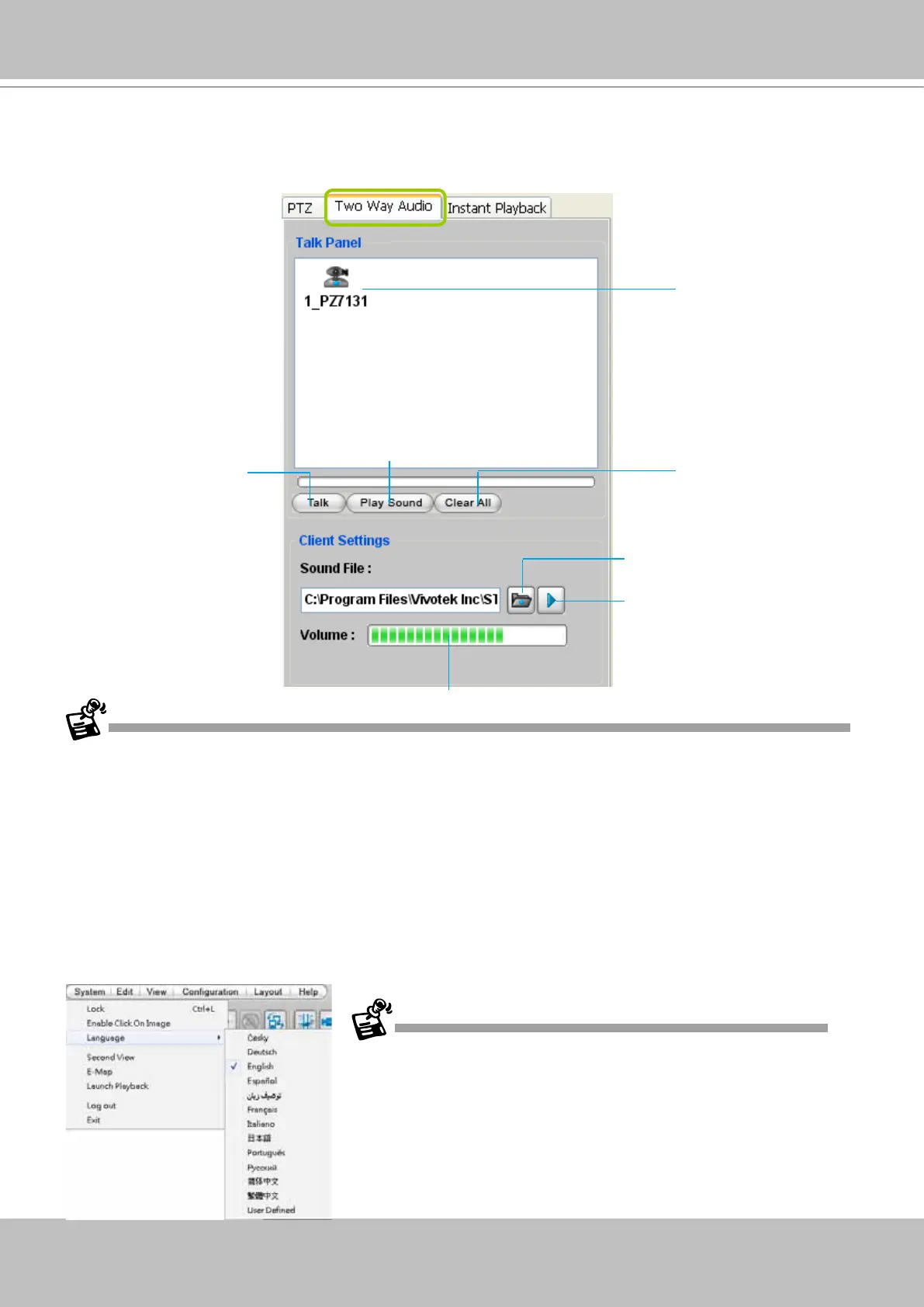 Only cameras that come with the two way audio function can be added to the Talk Panel.