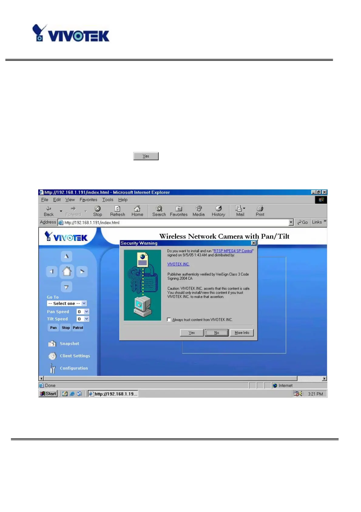 For the initial access to the Network Camera in Windows, the web browser may prompt
