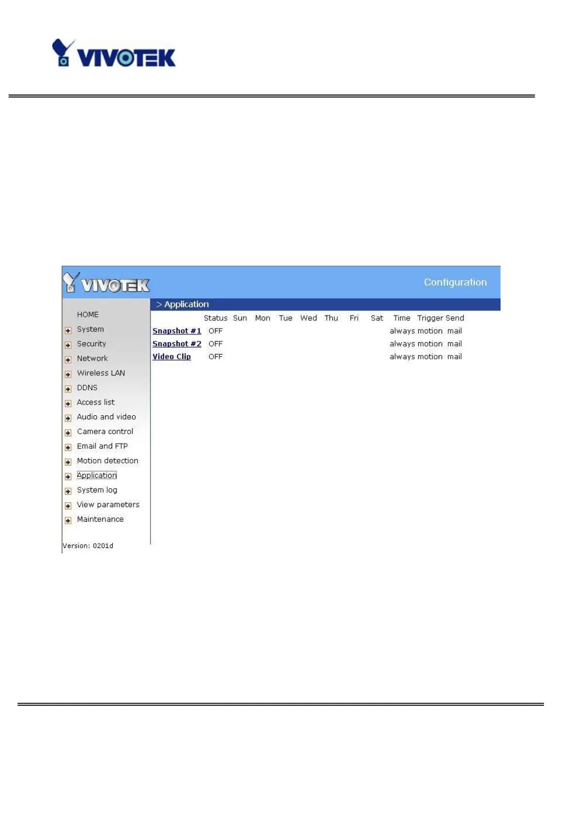 The server provides two kinds of applications, snapshot and videoclip. There are two