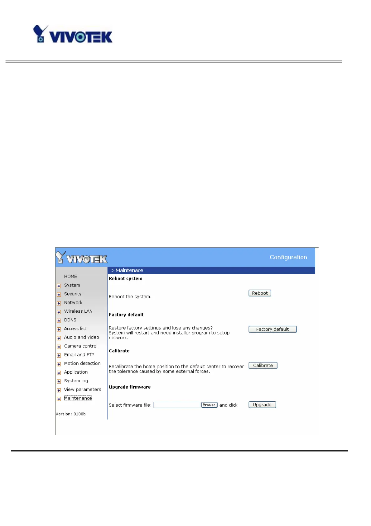 “Calibrate” button, the Network Camera will calibrate immediately.