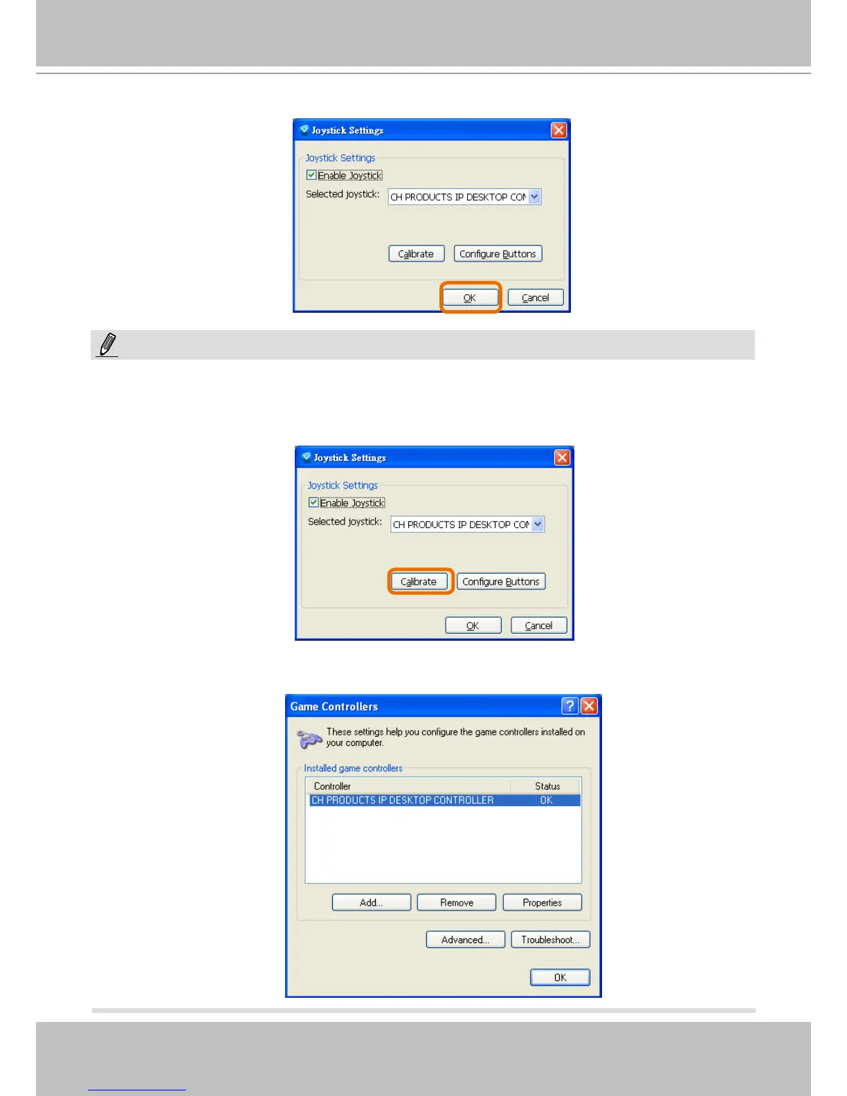 the Game Controllers window located in Microsoft Windows control panel and follow the instructions for