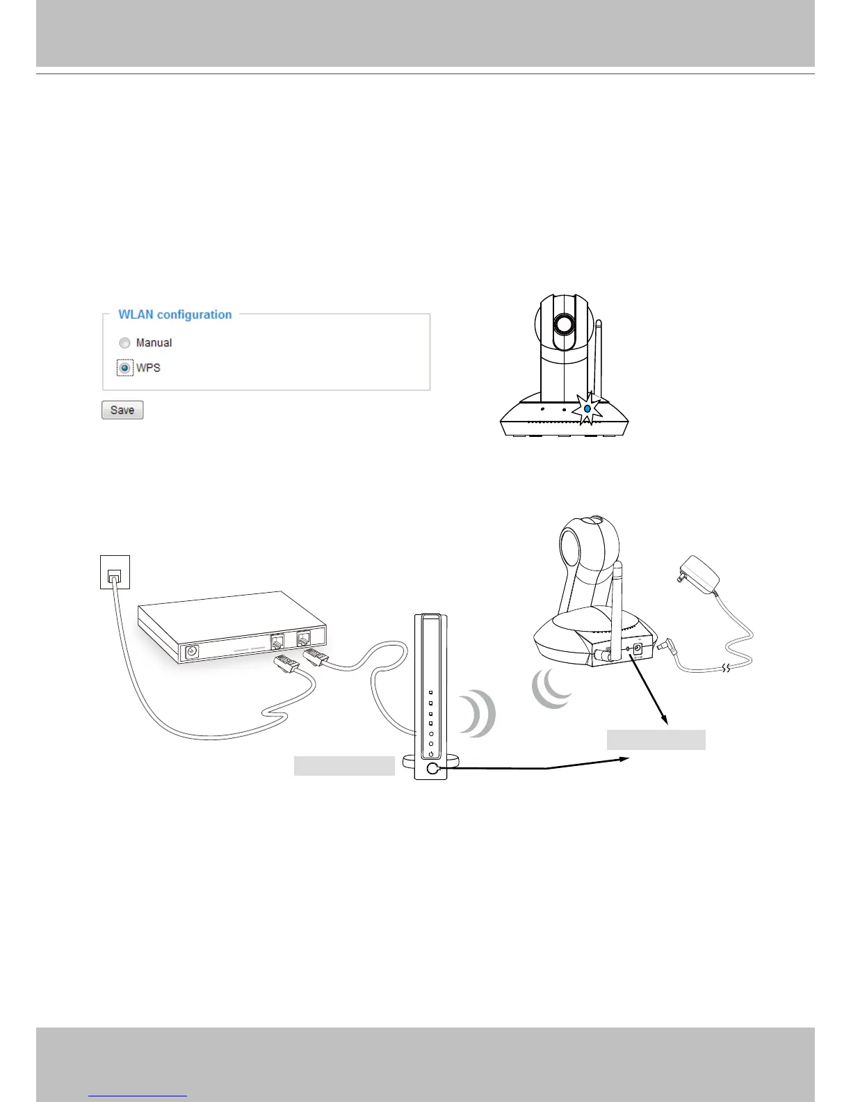 3. The camera's blue LED should start ashing. Press and hold down both of the WPS buttons on