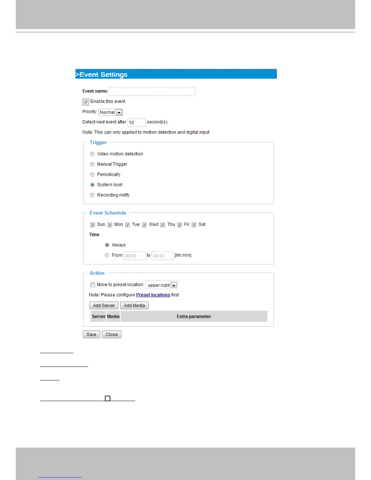 Enable this event: Select this option to enable the event setting.