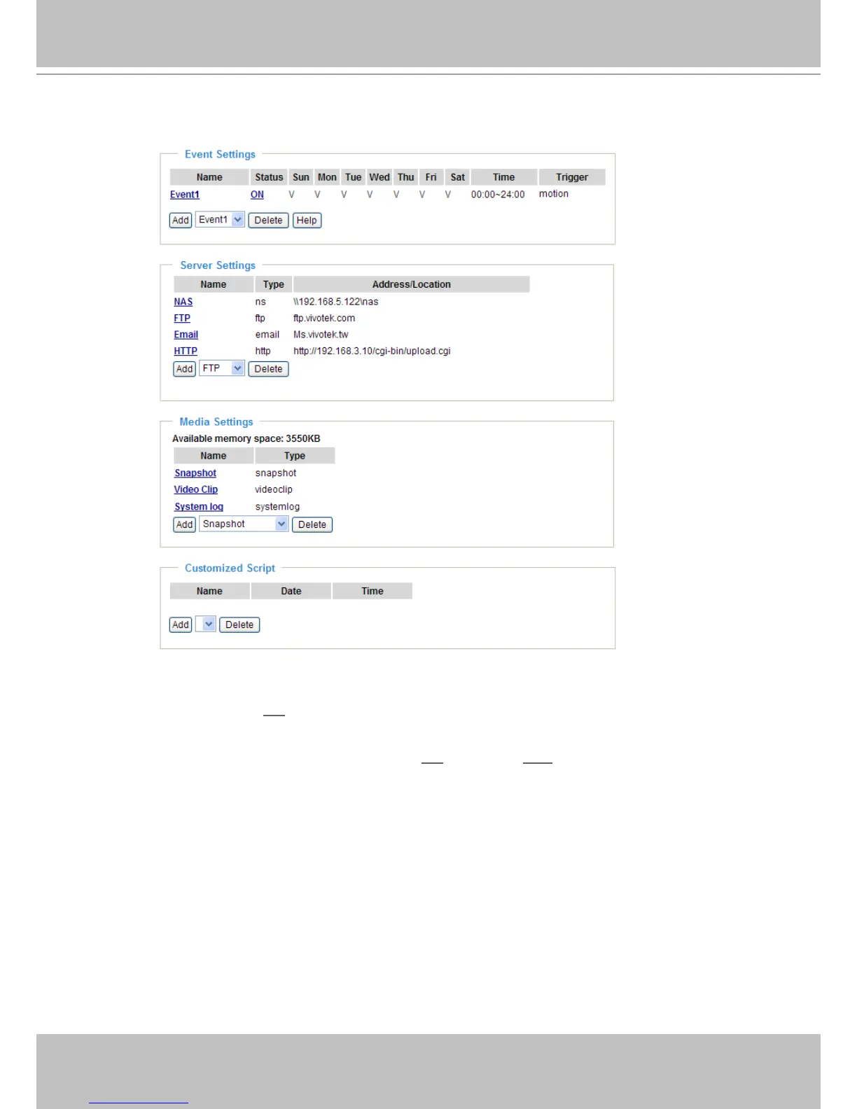 When the Event Status is ON, once an event is triggered by motion detection, the Network Camera will