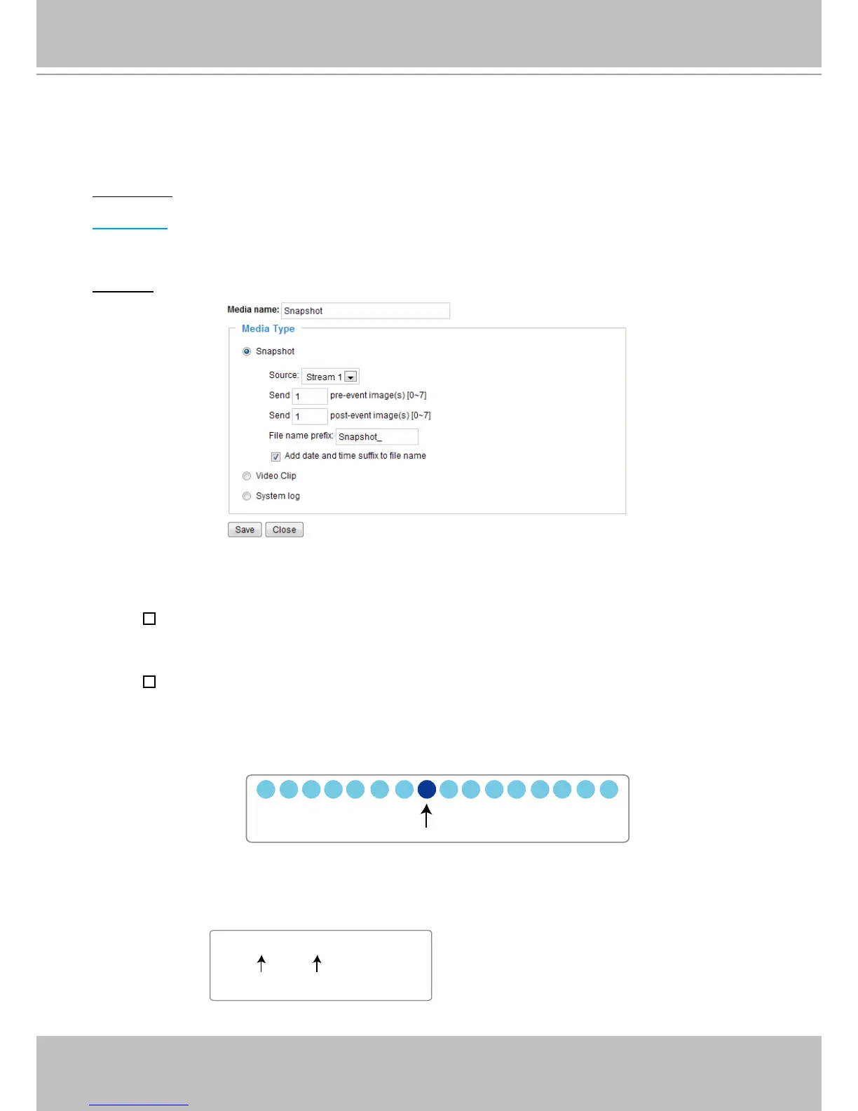 There are three choices of media types available: Snapshot, Video clip, and System log.