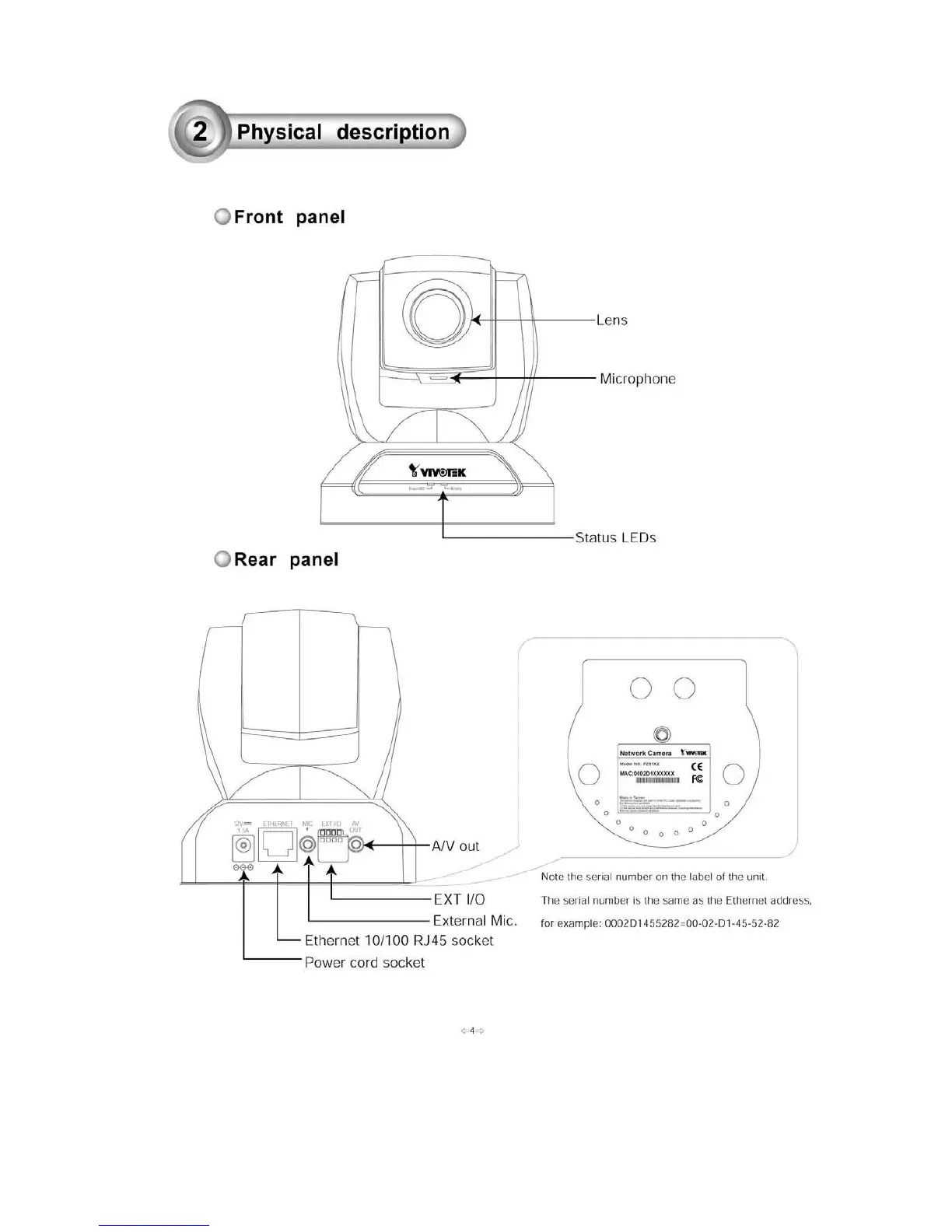 Vivotek PZ6112 - Physical Description; Front Panel; Rear Panel