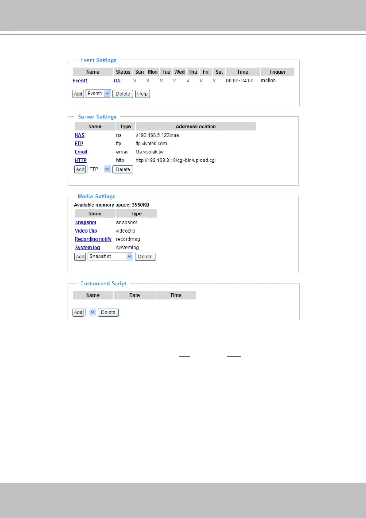 Note that only when the media setting is not being applied to an event setting can it be deleted�