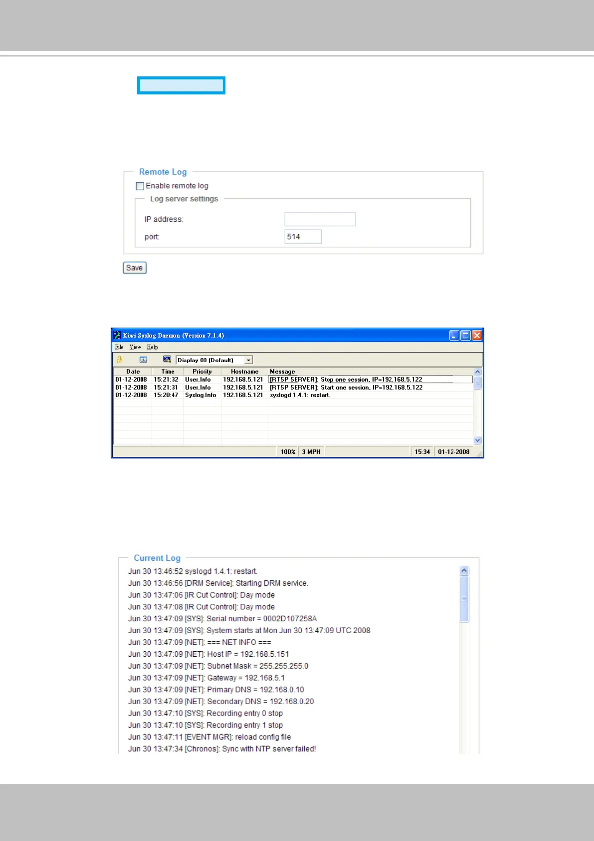 messages from the Network Camera� An example is Kiwi Syslog Daemon� Visit http://www�kiwisyslog�