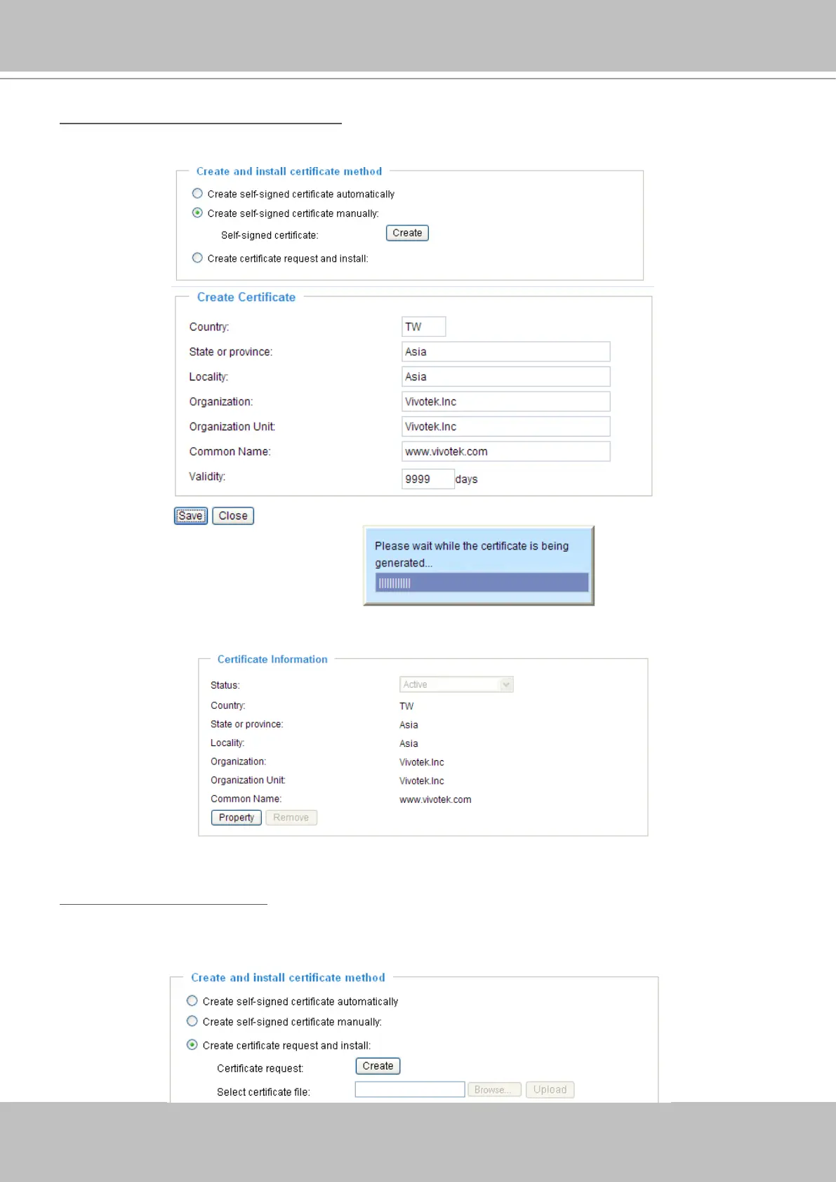 2� Click Create to open a Create Certicate page, and then click Save to generate the certicate.
