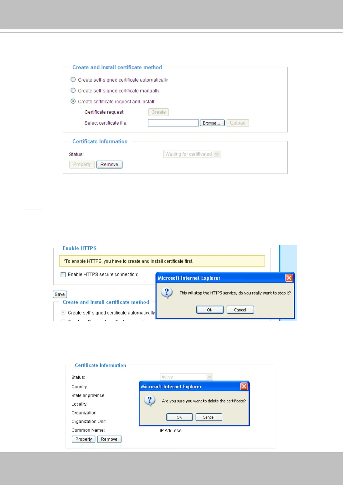 ► If you want to create and install other certificate, please remove the existing one. To remove the