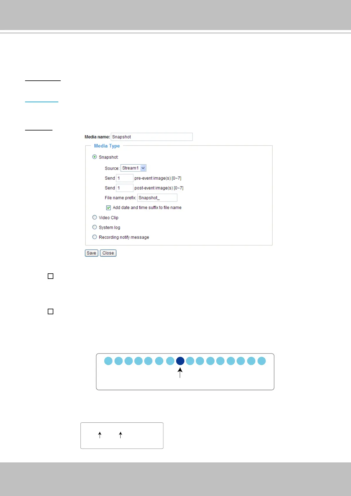 There are three choices of media types available: Snapshot, Video clip, and System log�