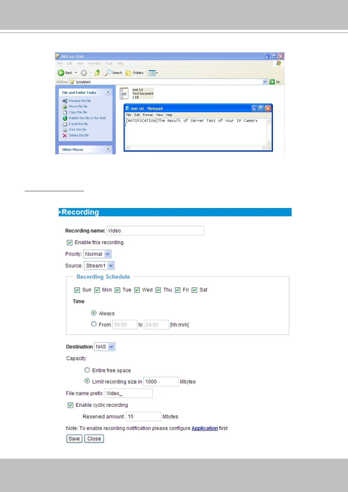 recording schedule and recording capacity. A total of 2 recording settings can be congured.