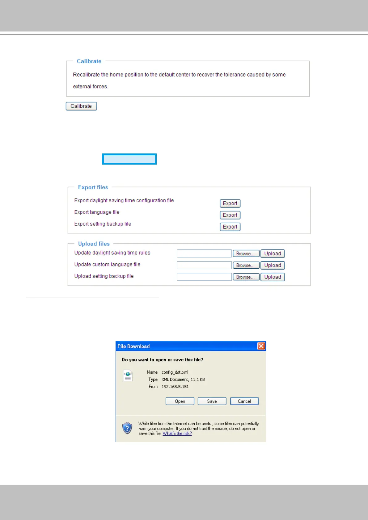 This feature allows you to Export / Upload daylight saving time rules, custom language les, and setting