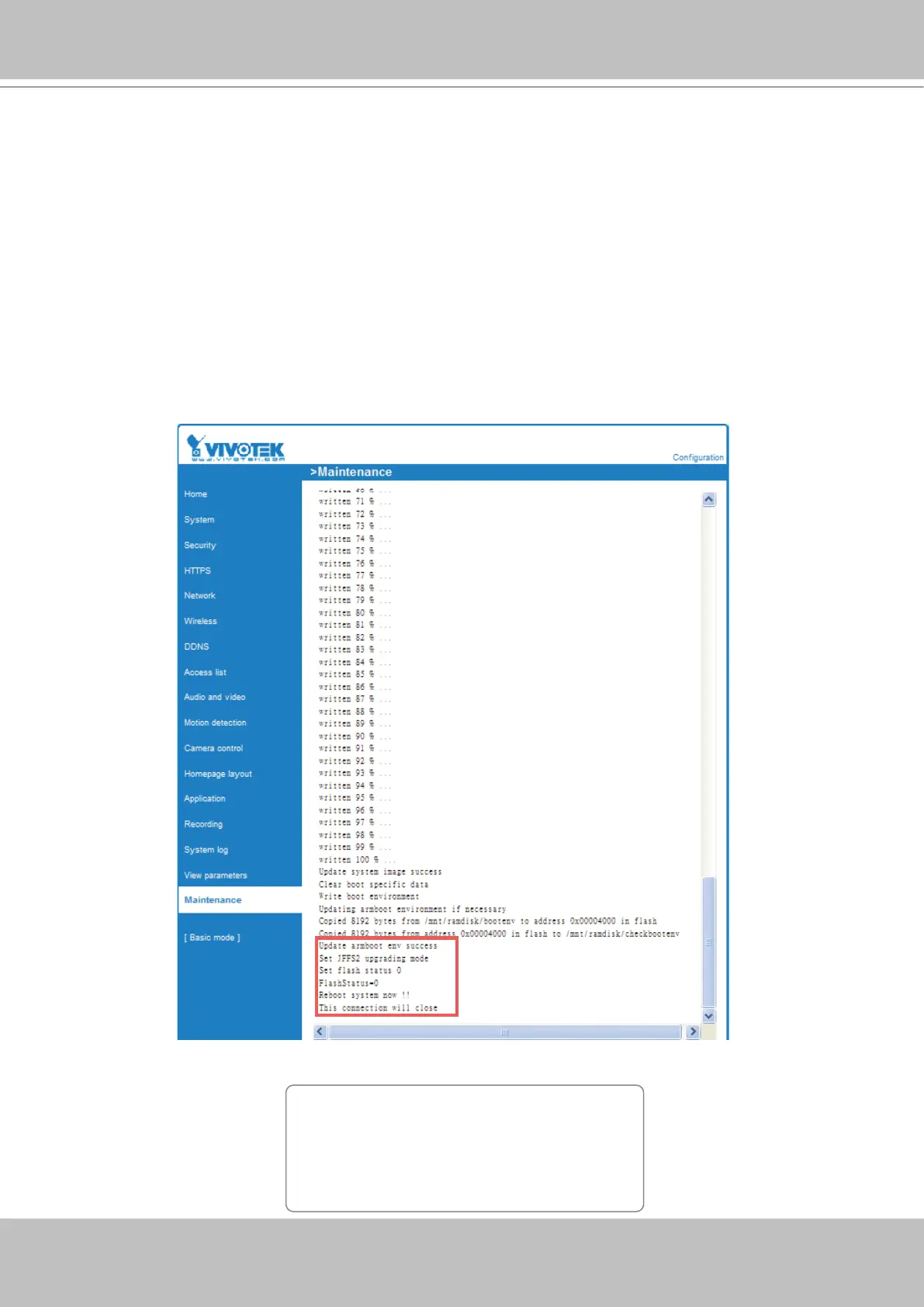 The upgrade is successful as you see “Reboot system now!! This connection will close”� After that, re-