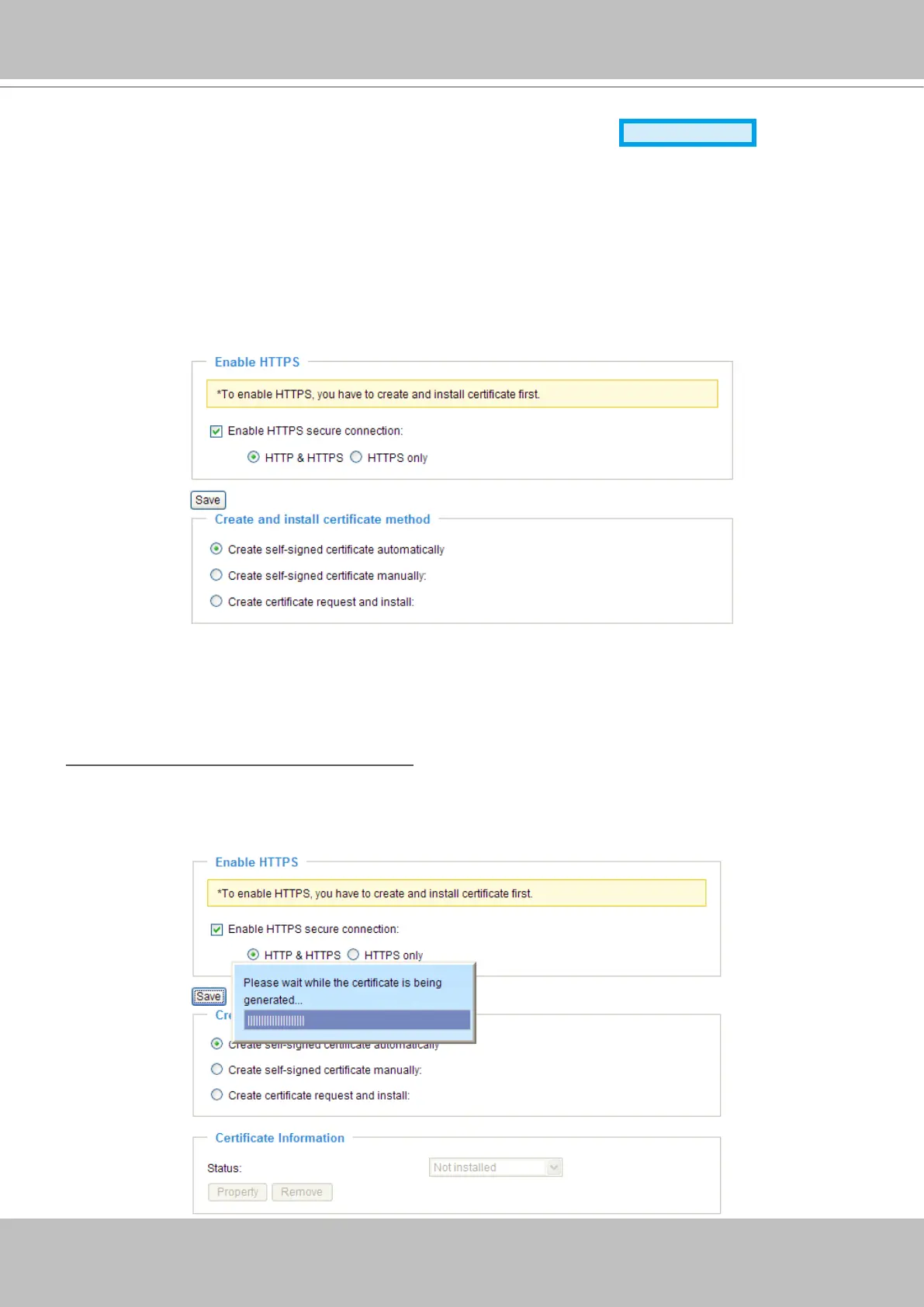 Before using HTTPS for communication with the Network Camera, a Certicate must be created rst.