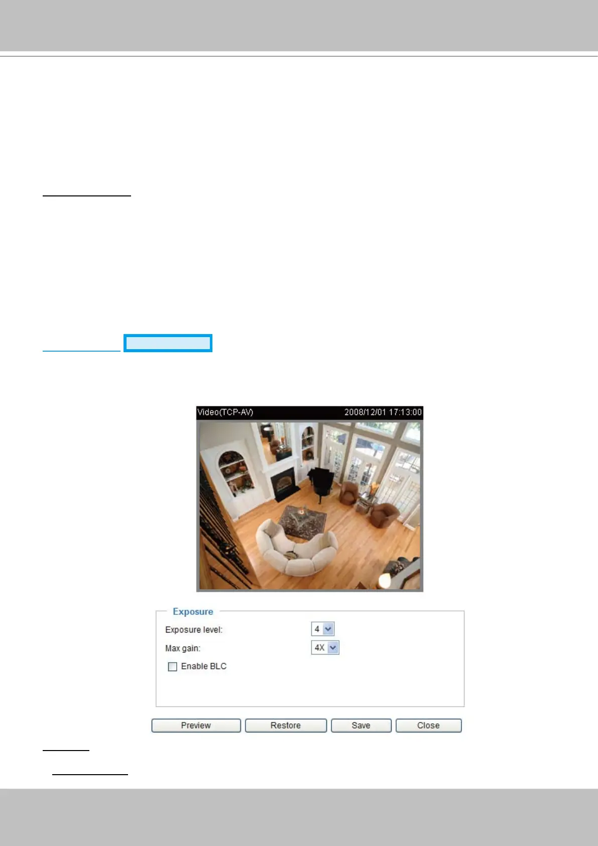 exposure time, exposure level, AGC, and WDR (Wide Dynamic Range) settings�