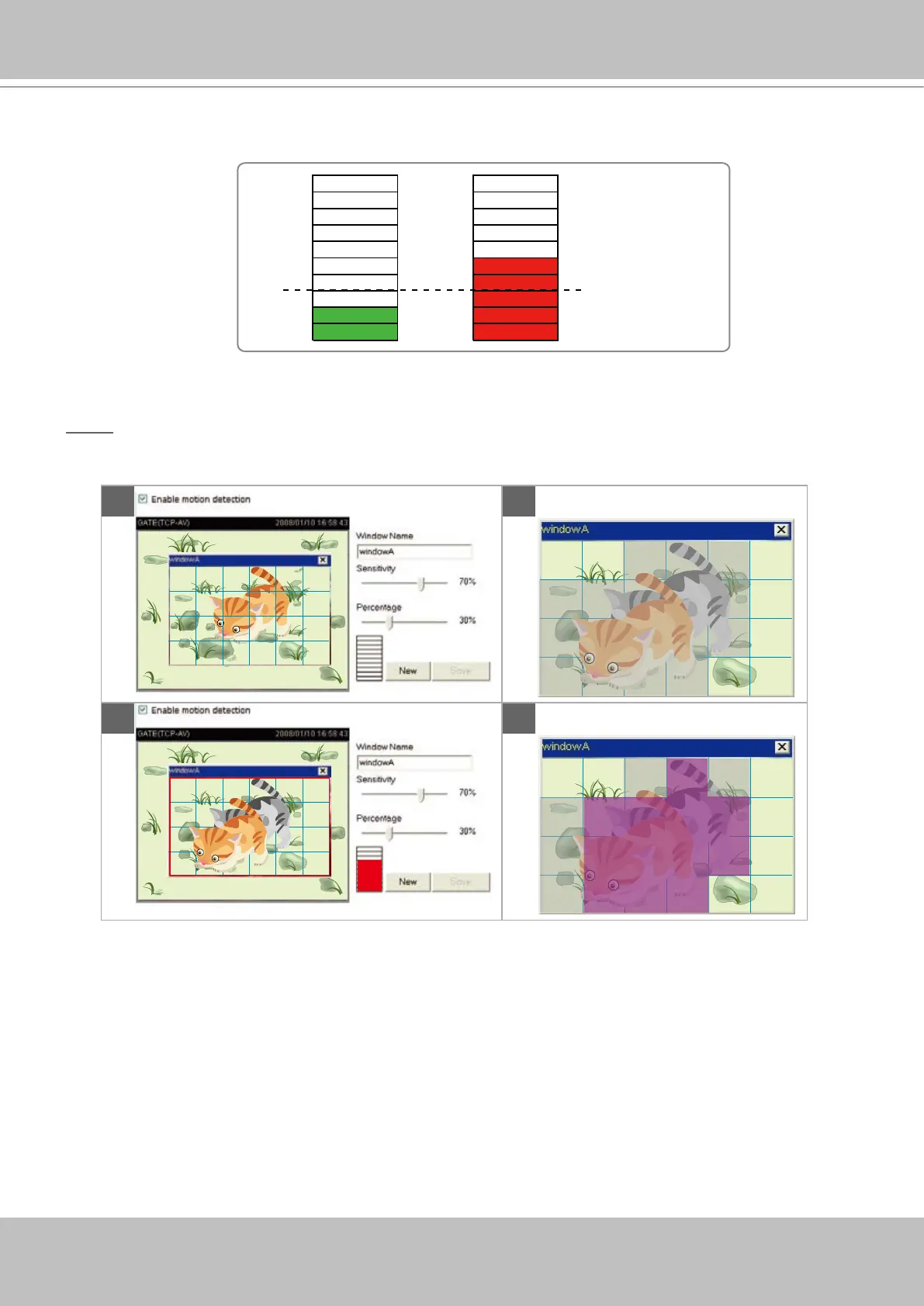 There are two motion detection parameters: Sensitivity and Percentage� In the illustration above,