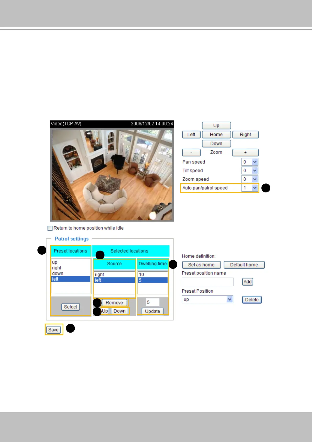 3� Set the Dwelling time for the preset location during auto patrol� The default value is 10 seconds� You