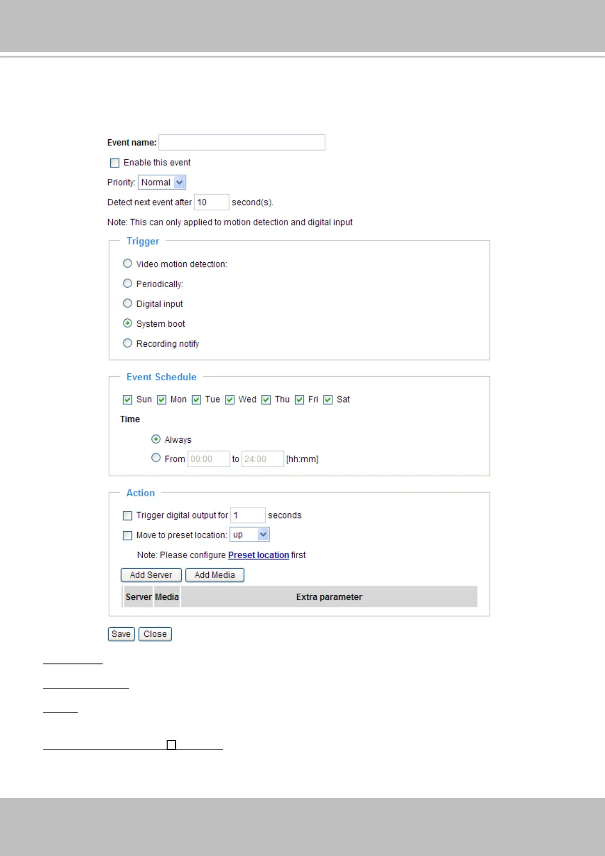 Enable this event: Select this option to enable the event setting�