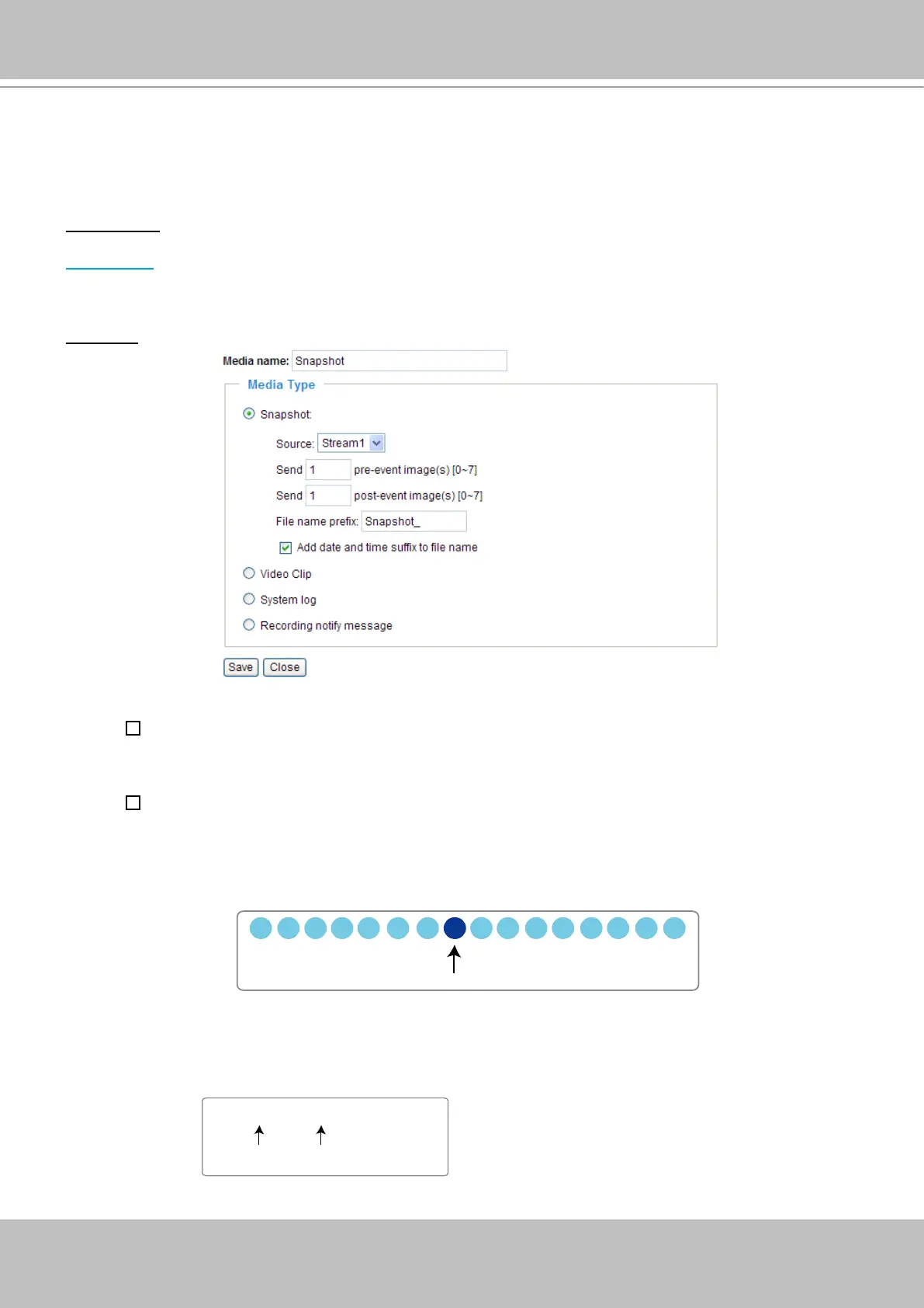 There are three choices of media types available: Snapshot, Video clip, and System log�