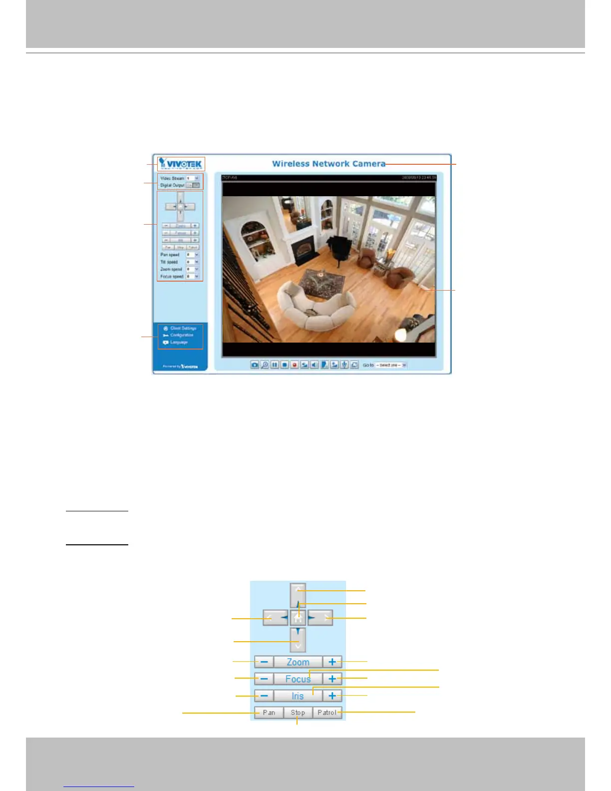 Vivotek PZ8121 - Main Page Interface and Controls; Main Page Layout